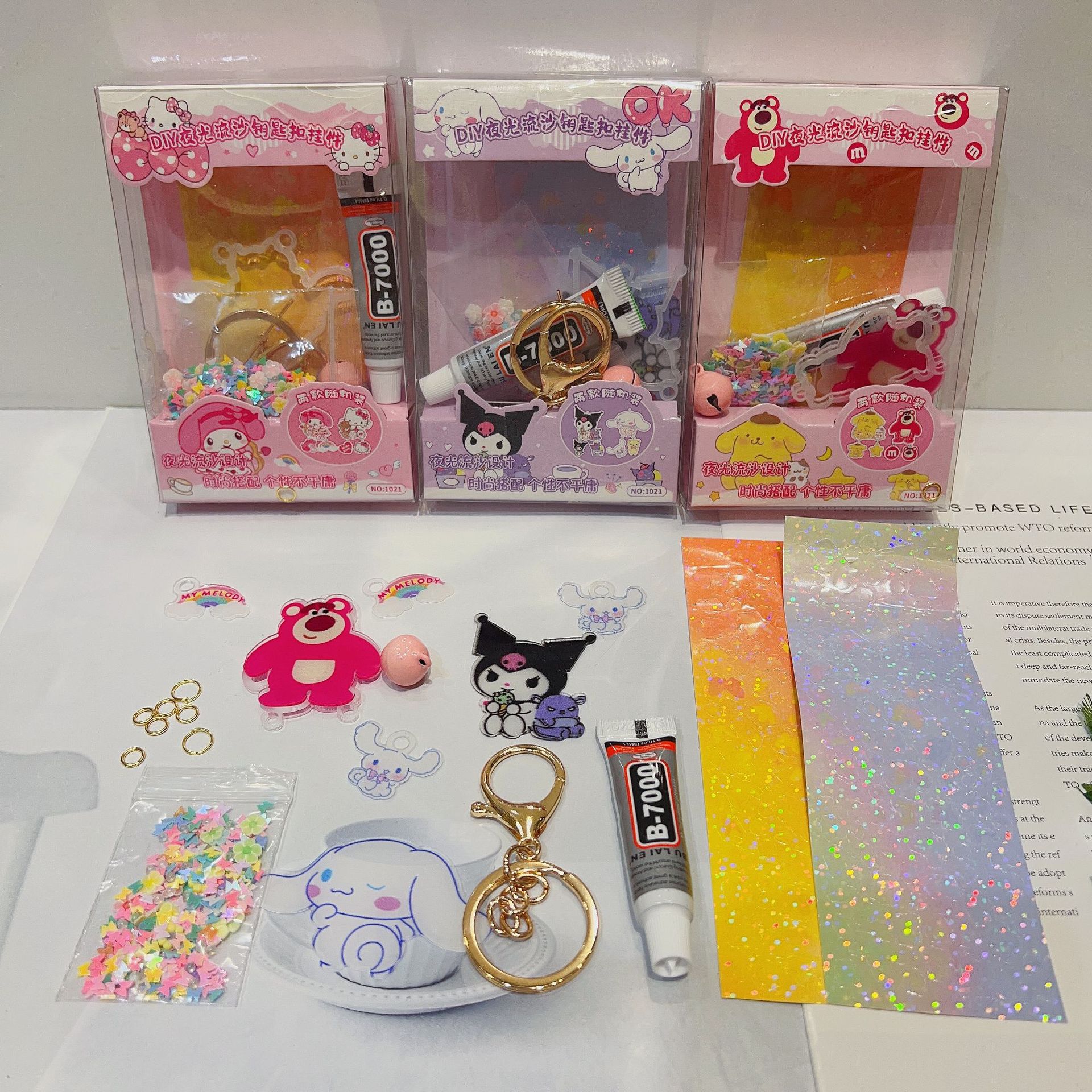 1021diy luminous quicksand keychain pendant set
