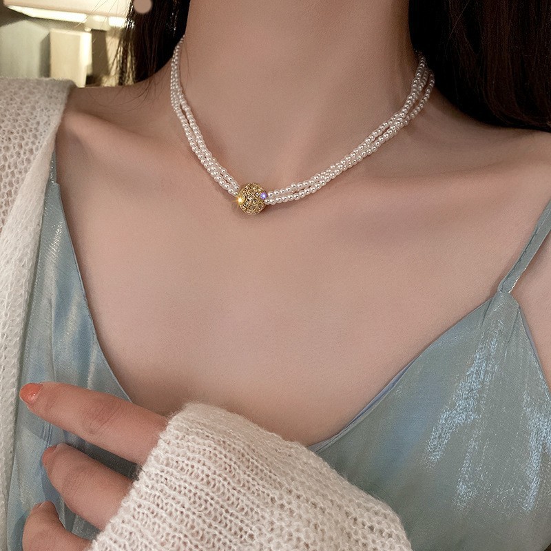 9# necklace. white multi-layer pearl