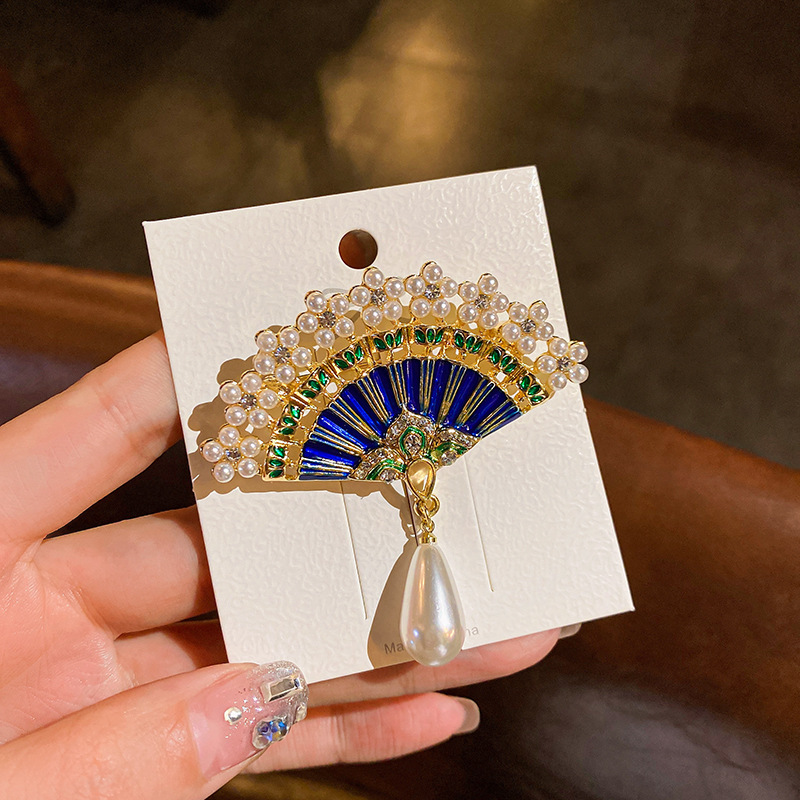 55# brooch-blue (fan water drops)