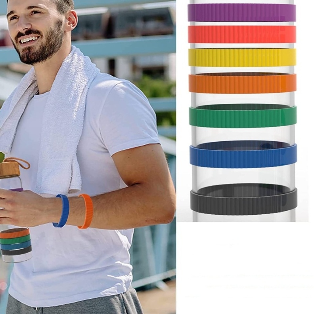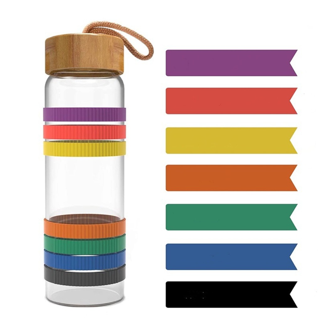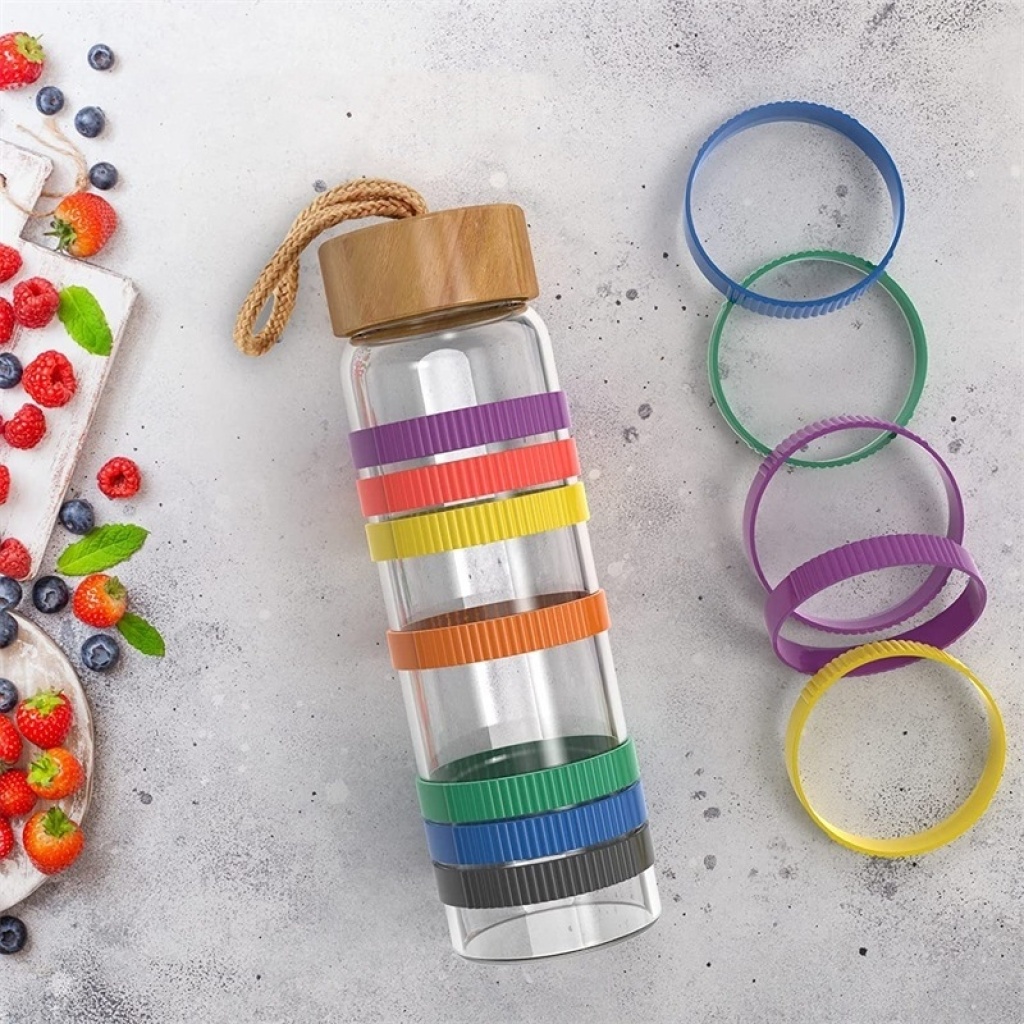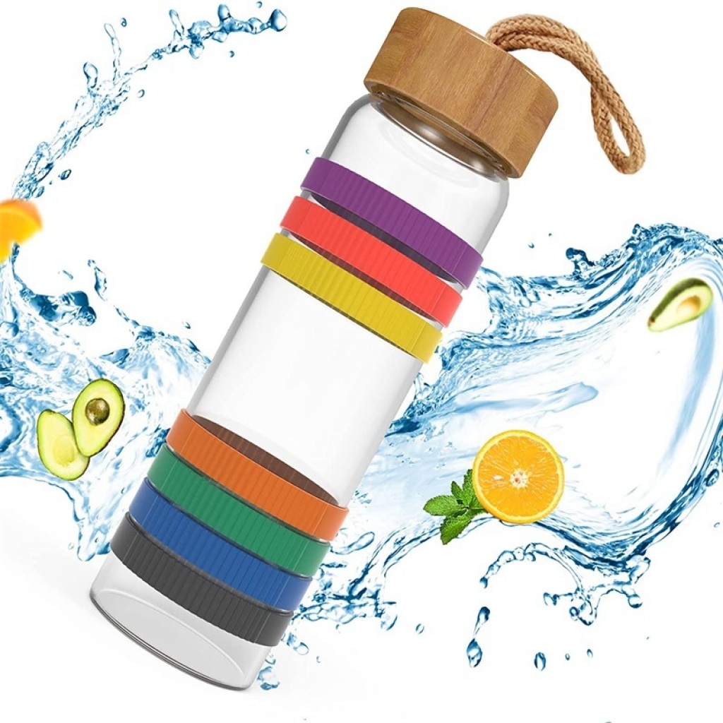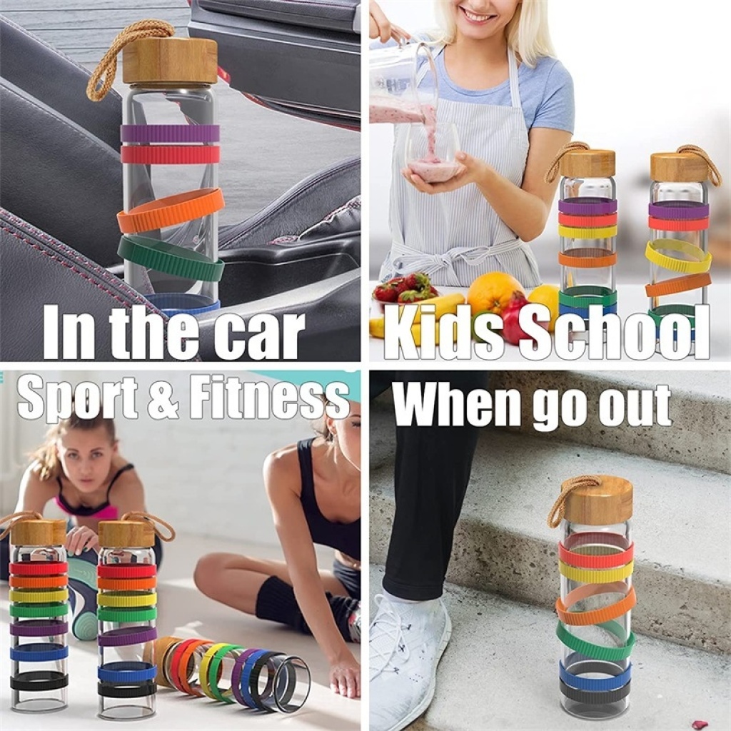 Glass Water Cup Large Capacity Bamboo Cover Rope Handle Outdoor Sports Portable Rainbow Cups Set Silicone Ring Cover Minimalist Water Cup