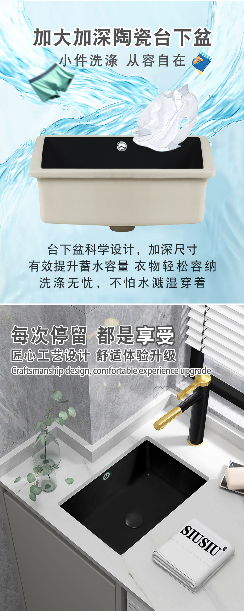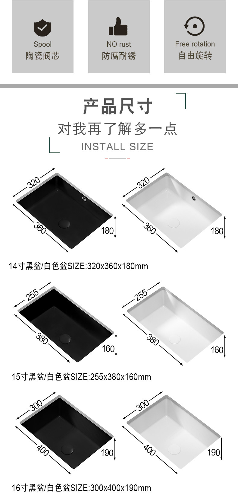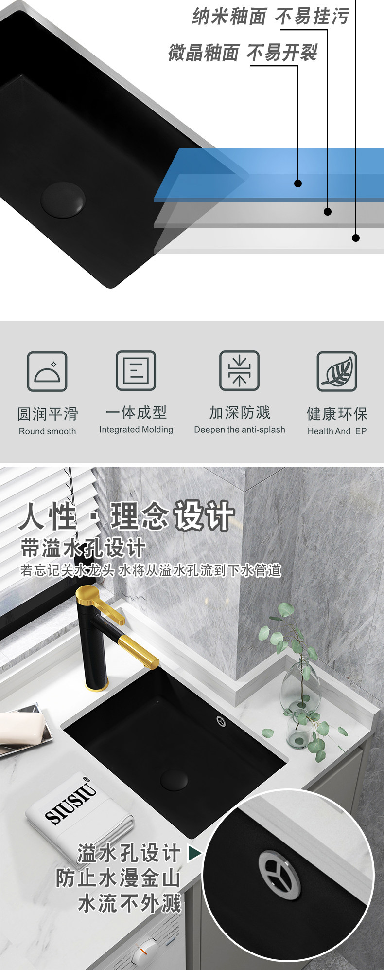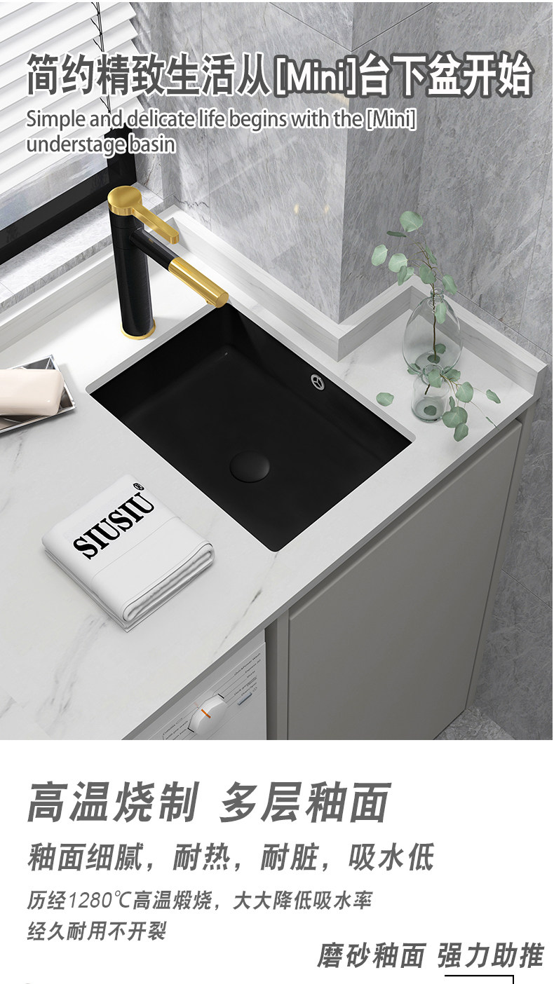Wholesale Small Width Super Narrow Vertical Drop-in Sink Embedded Small Washbasin Stone Basin Black Ceramic Sink