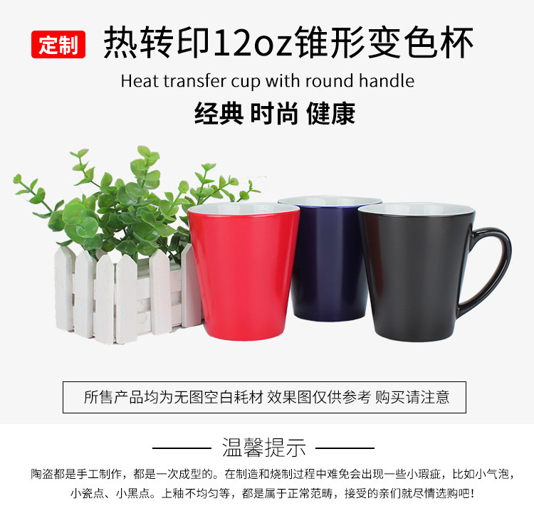 Heat Transfer Printing Coating Cup 12Oz Prototype Discoloration Cup Sublimation Personality DIY Printing Picture Ceramic Funnel Cup