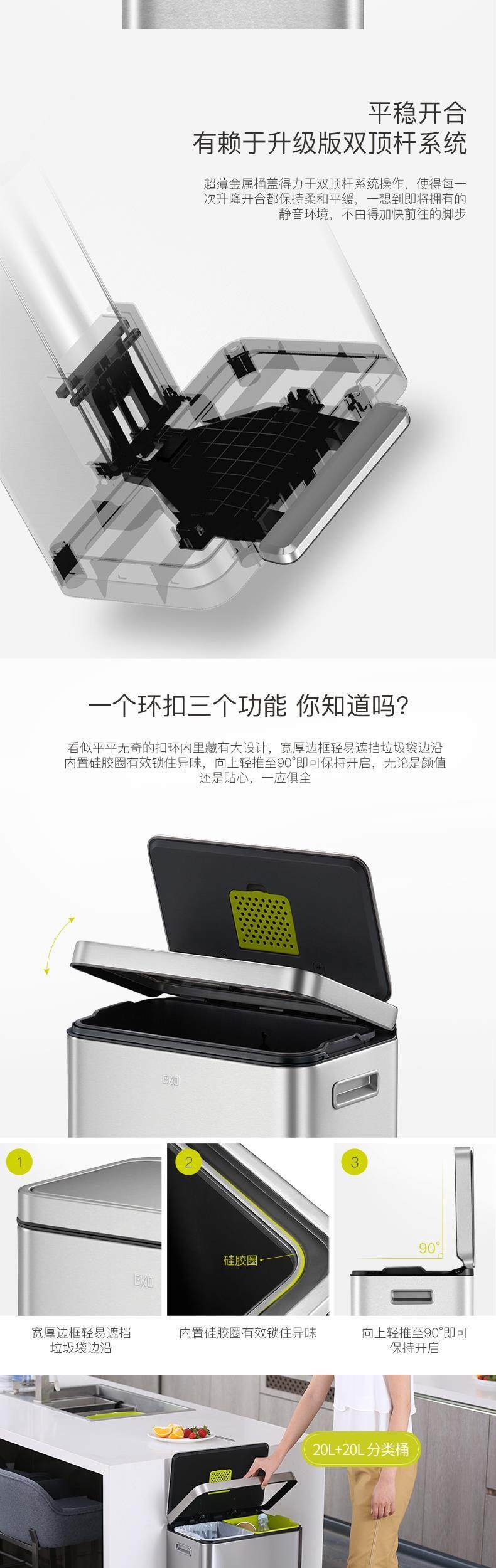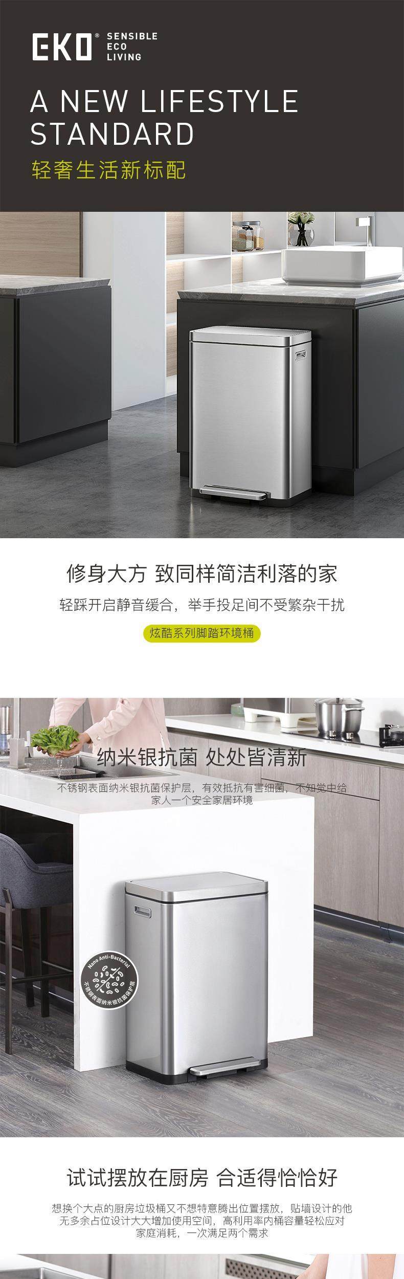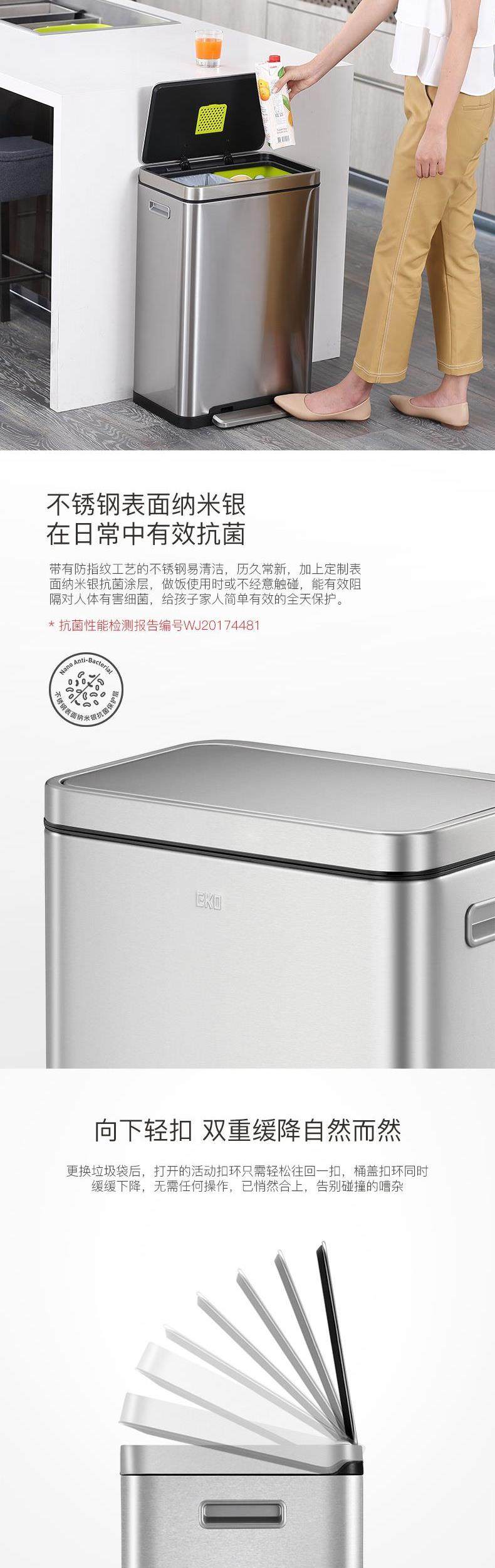 eko fashion european style large sorting trash bin pedal type mute stainless steel environment bucket with lid single and double inner bucket