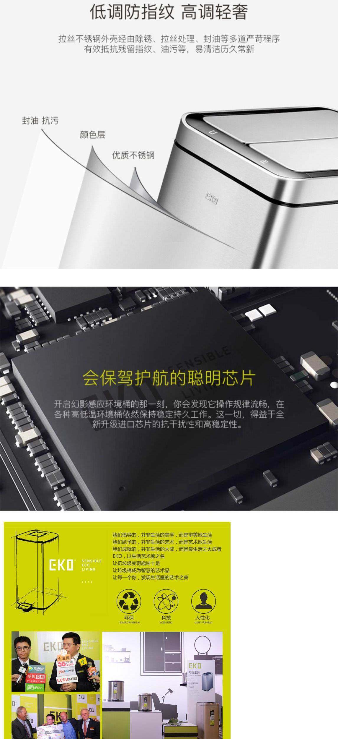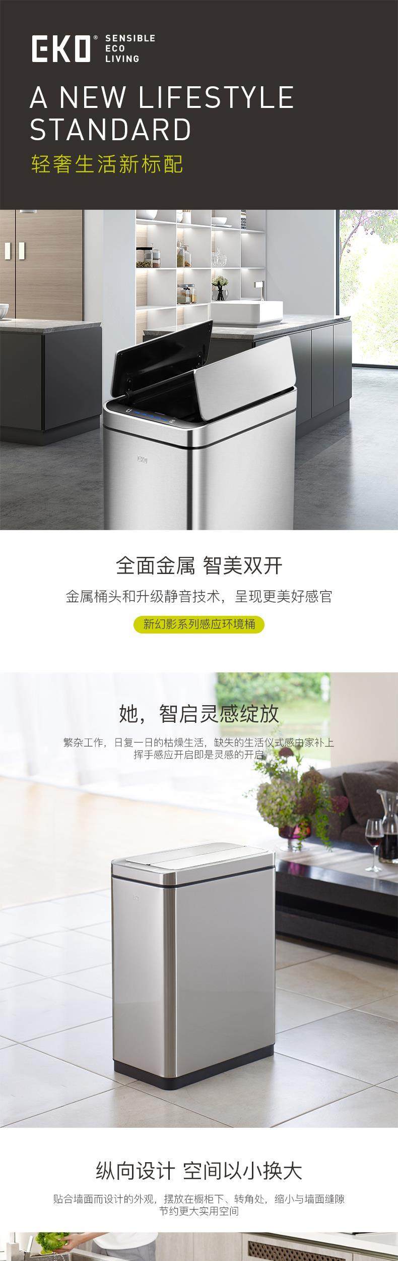 eko intelligent induction automatic flap trash can household living room and kitchen stainless steel medium and large barrel