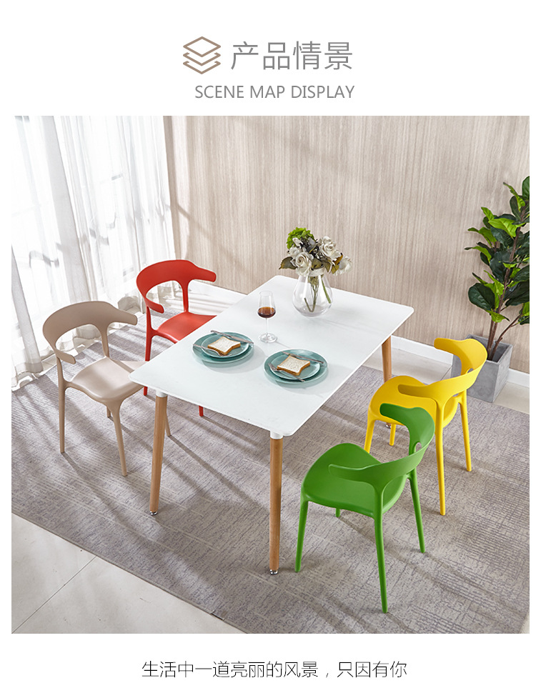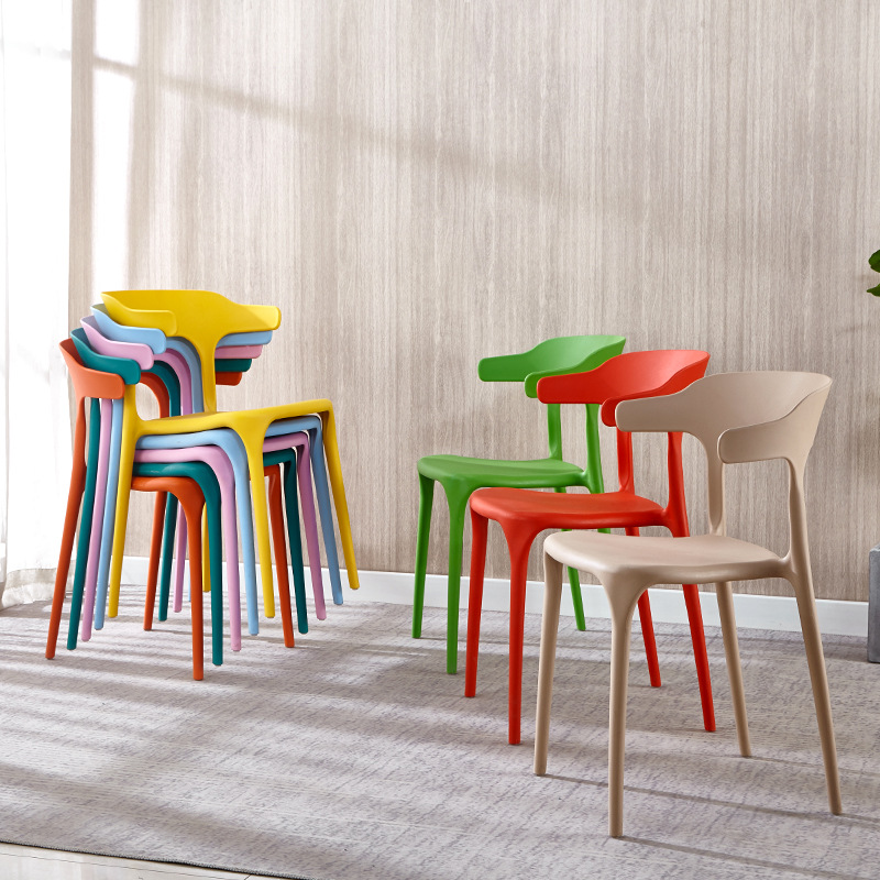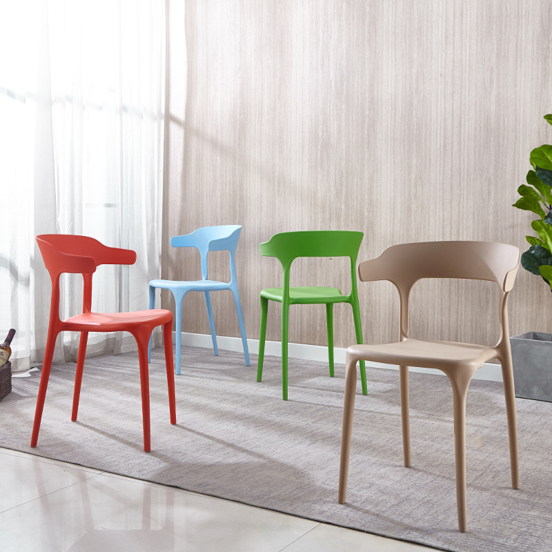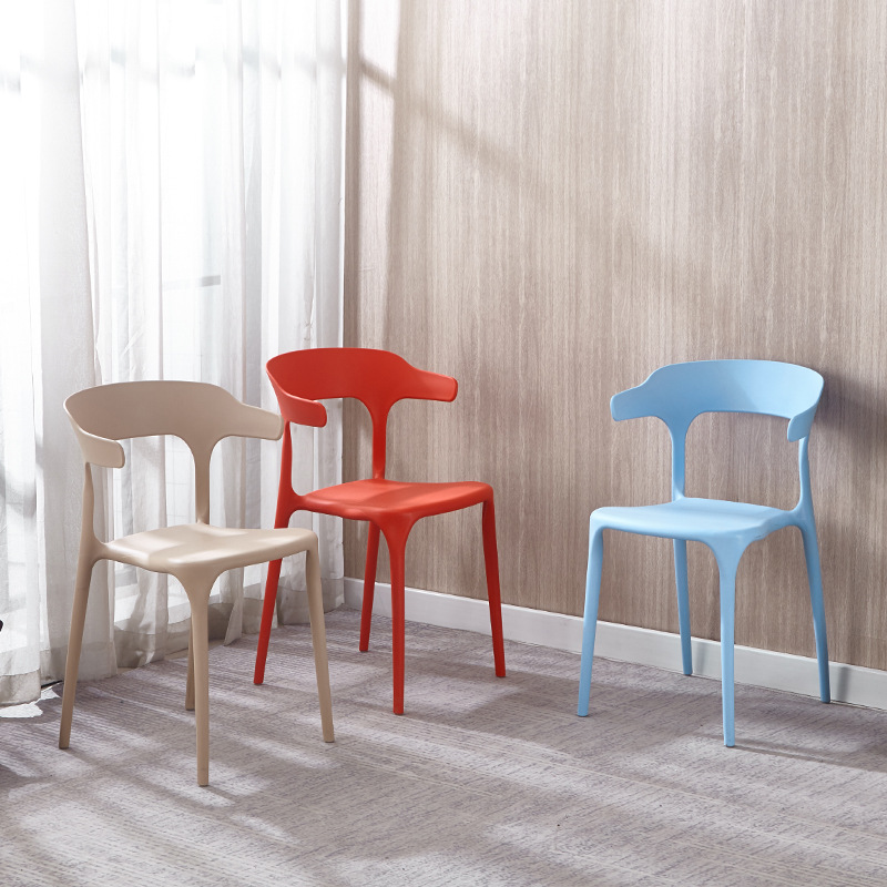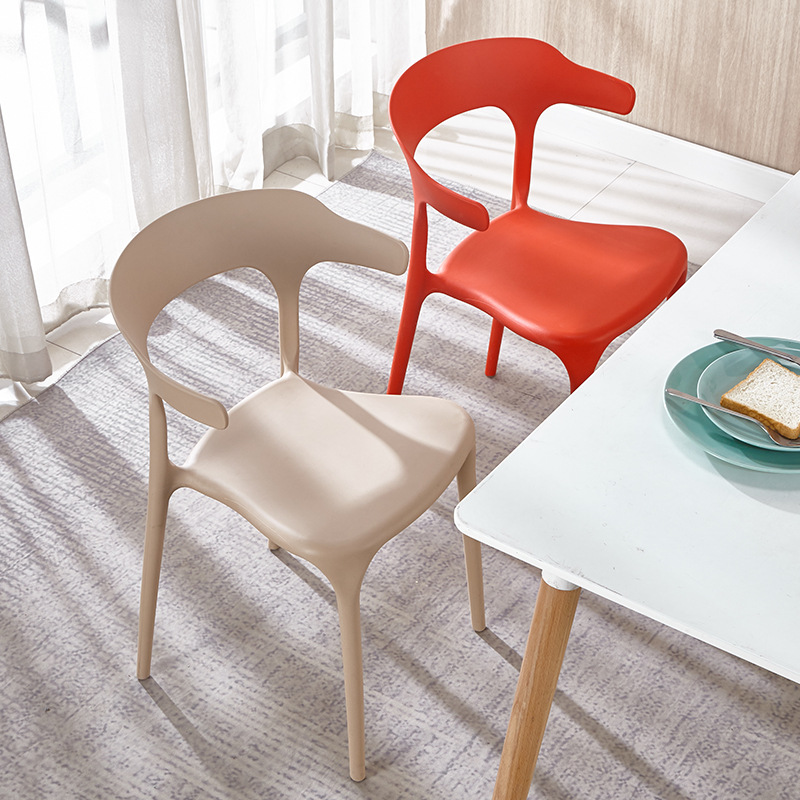 Simple Plastic Adult Ox Horn Chair Backrest Stool Nordic Office Conference Chair Household Catering Leisure Barbecue Chair