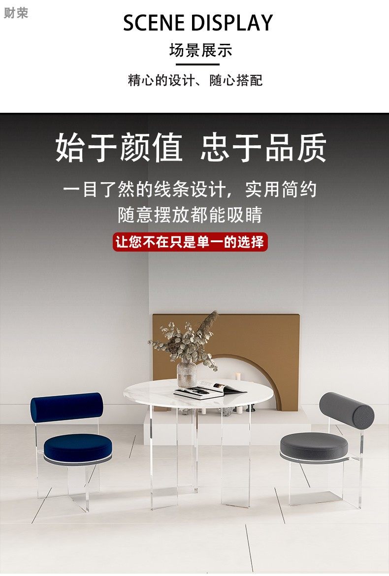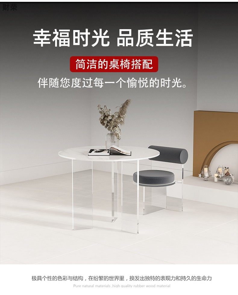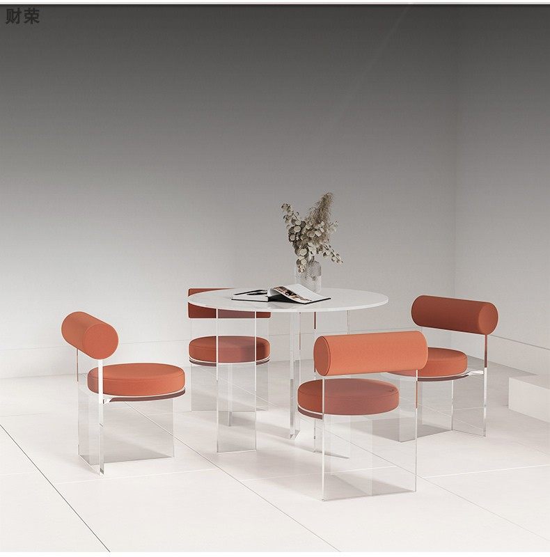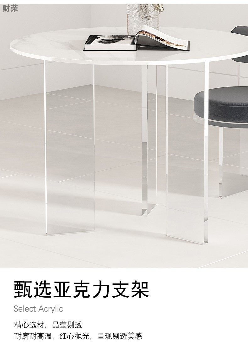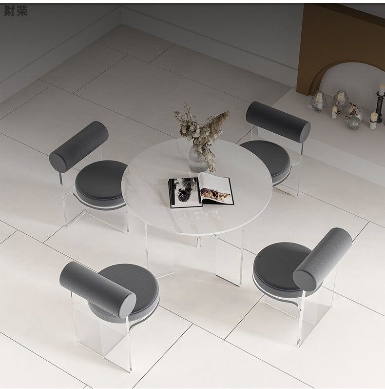 Nordic Small Apartment Simple Home round Stone Plate Dining Table Modern Designer Negotiation Light Table Acrylic Suspension Round Table