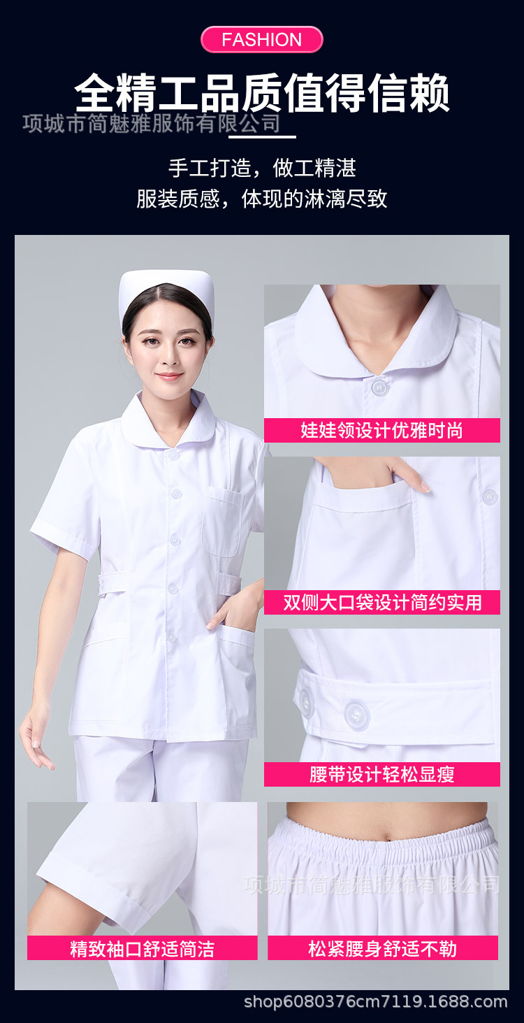 2023 Spring and Autumn Nurses' Uniform Women's Summer Wear Split Thin Suit Short Sleeve round Neck Dental Oral Two-Piece Overalls