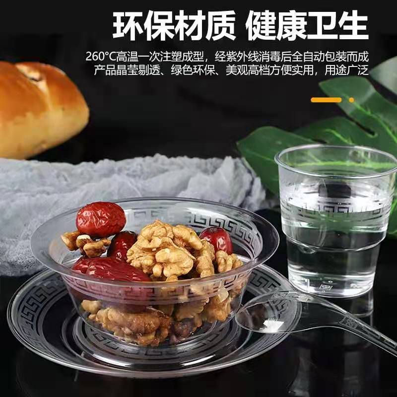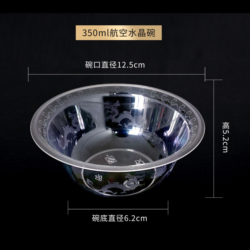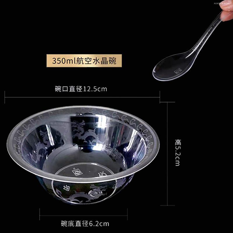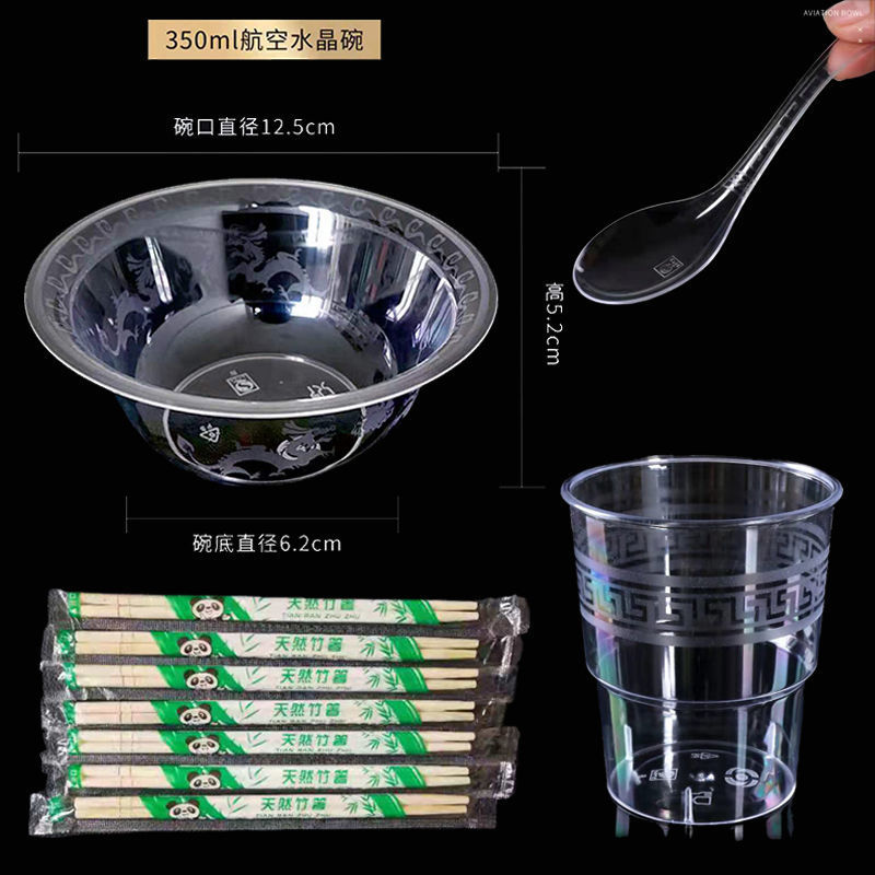 Disposable Bowl Aviation Crystal Bowl Hardened and Thickened Plastic Bowl Commercial for Home Use and Restaurants Snack Bowl and Chopsticks Set