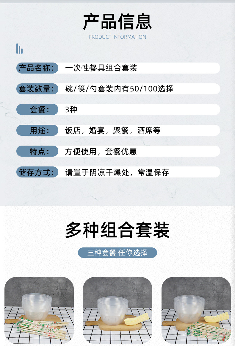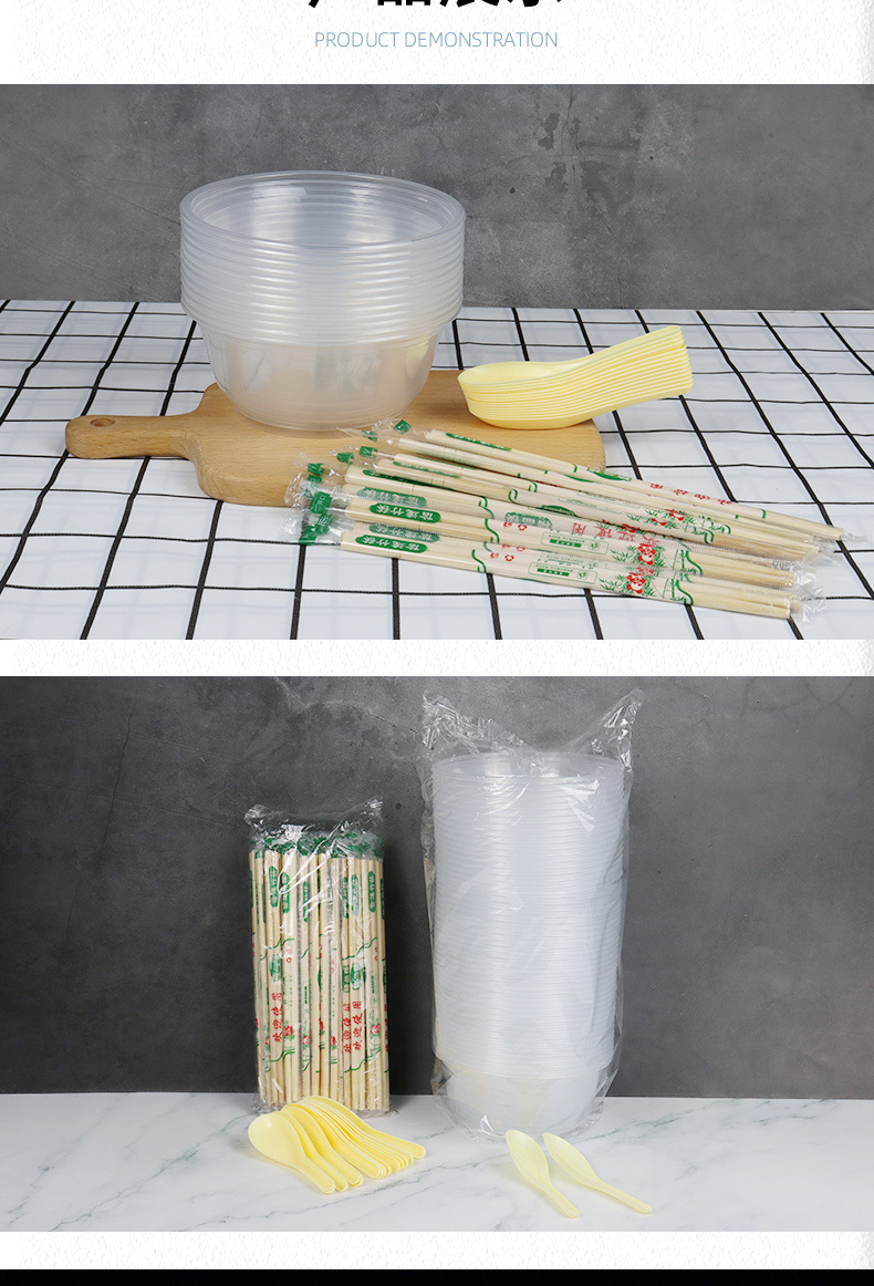 Disposal Plastic Bowl Spoon Kit Combination Tableware Picnic Supplies Household Hospitality round Wholesale One Piece Wholesale