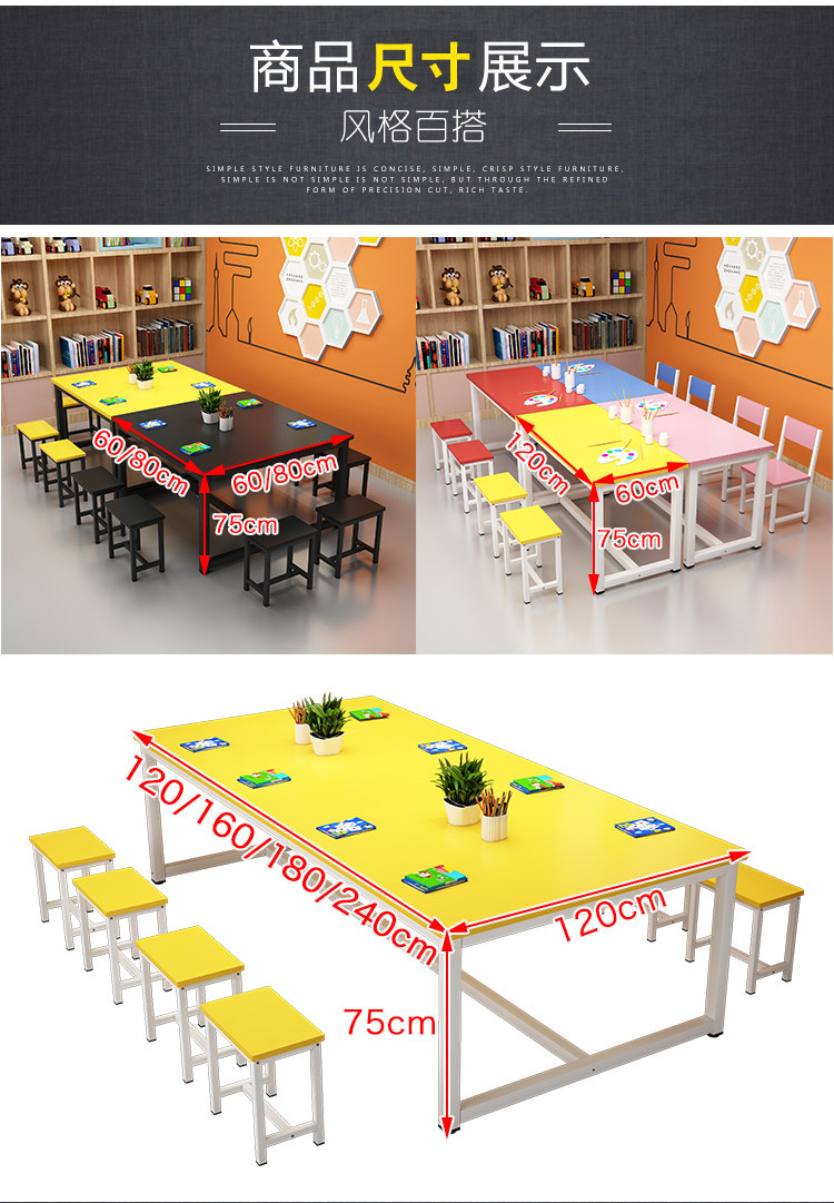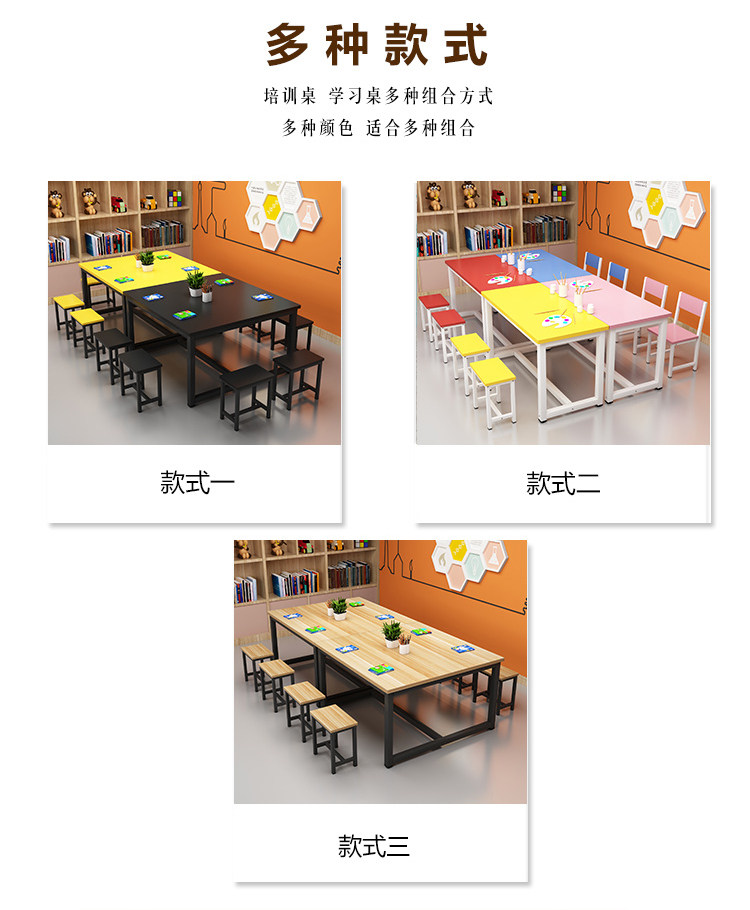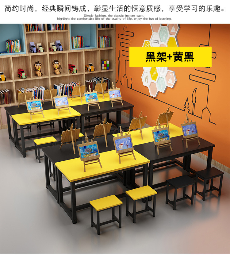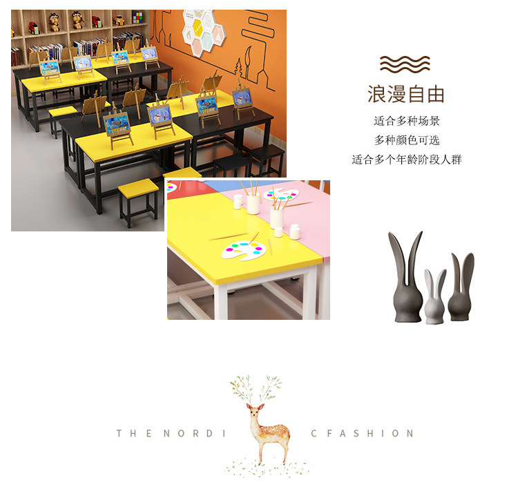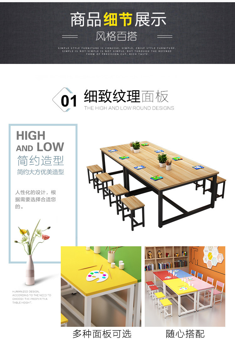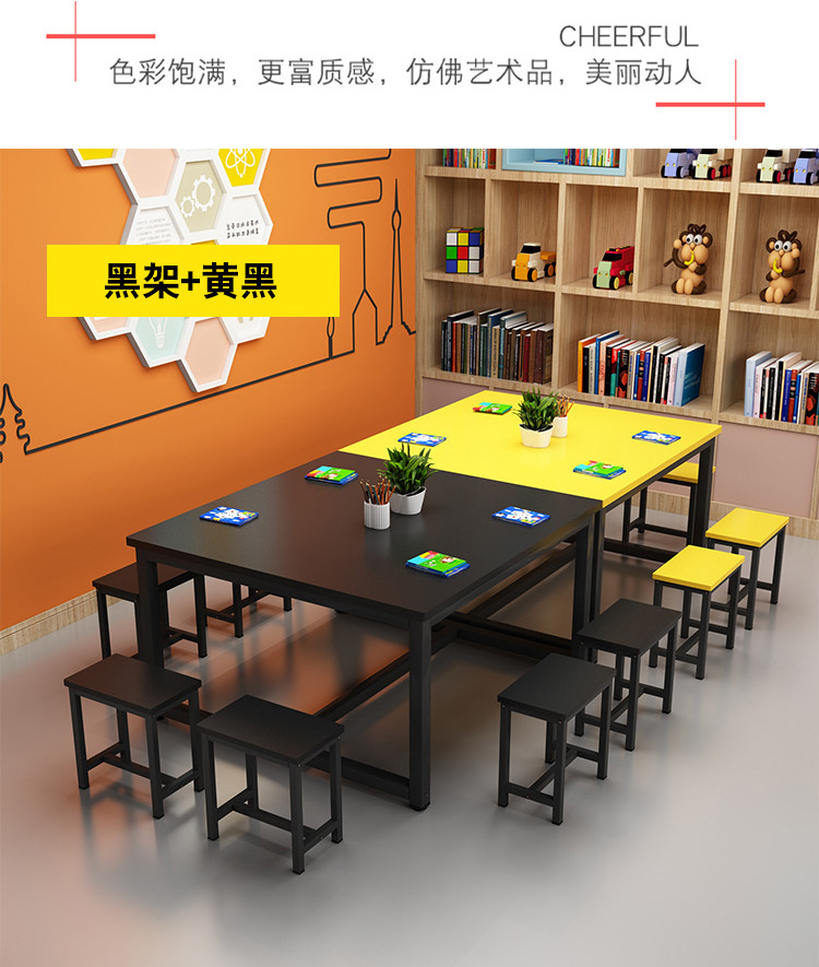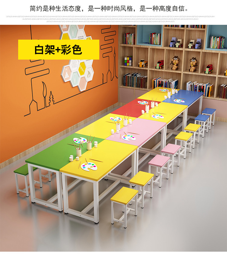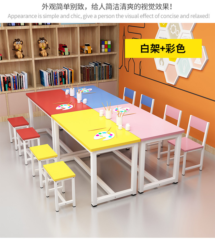 Primary School Kindergarten Colorful School Desk and Chair Children's Studio Table Art Handmade Painting Table Tutorial Class Training Table