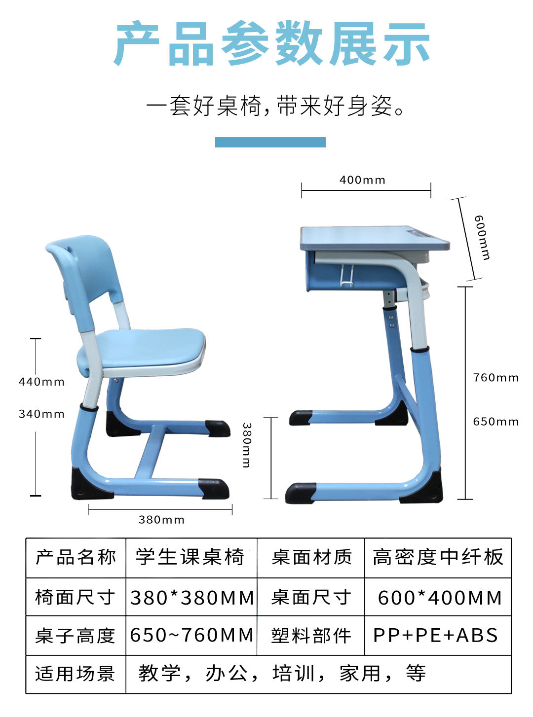 Primary and Secondary School Students School Desk and Chair Tutorial Class Training Desk Chair Children Adjustable Study Table Suit School Writing Desk