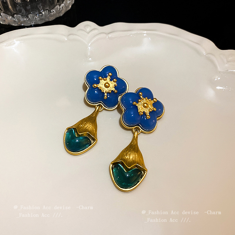4 silver needle-blue flower water drop