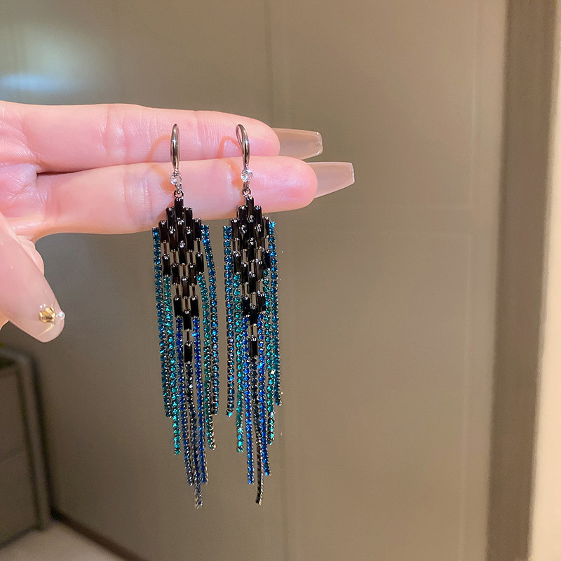 26# silver needle-black blue diamond tassel