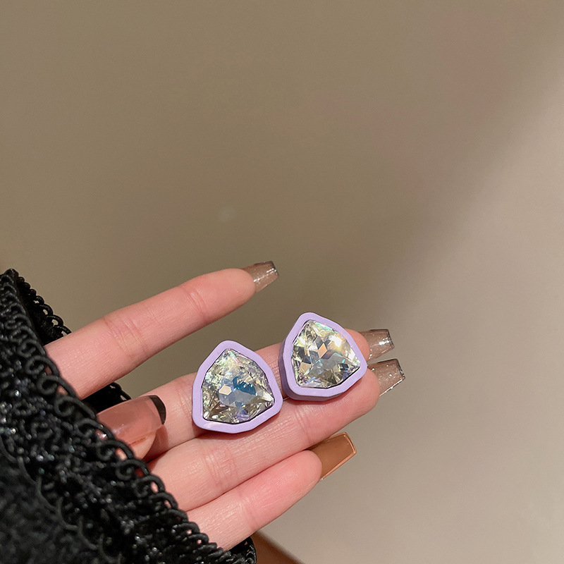 16# silver needle. diamond shield earrings