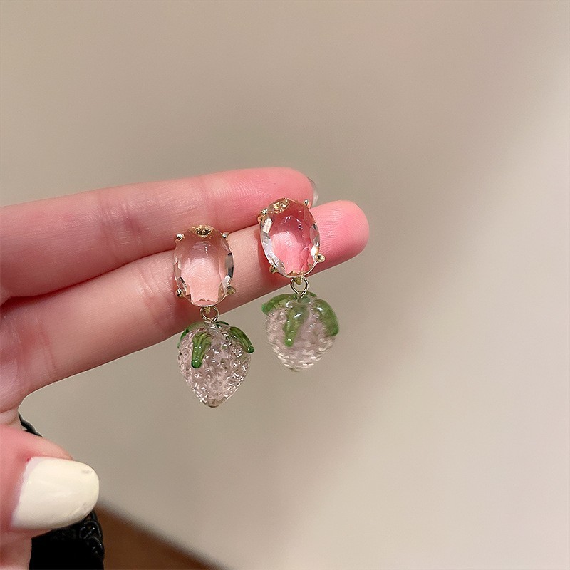 38# silver needle. resin strawberry earrings