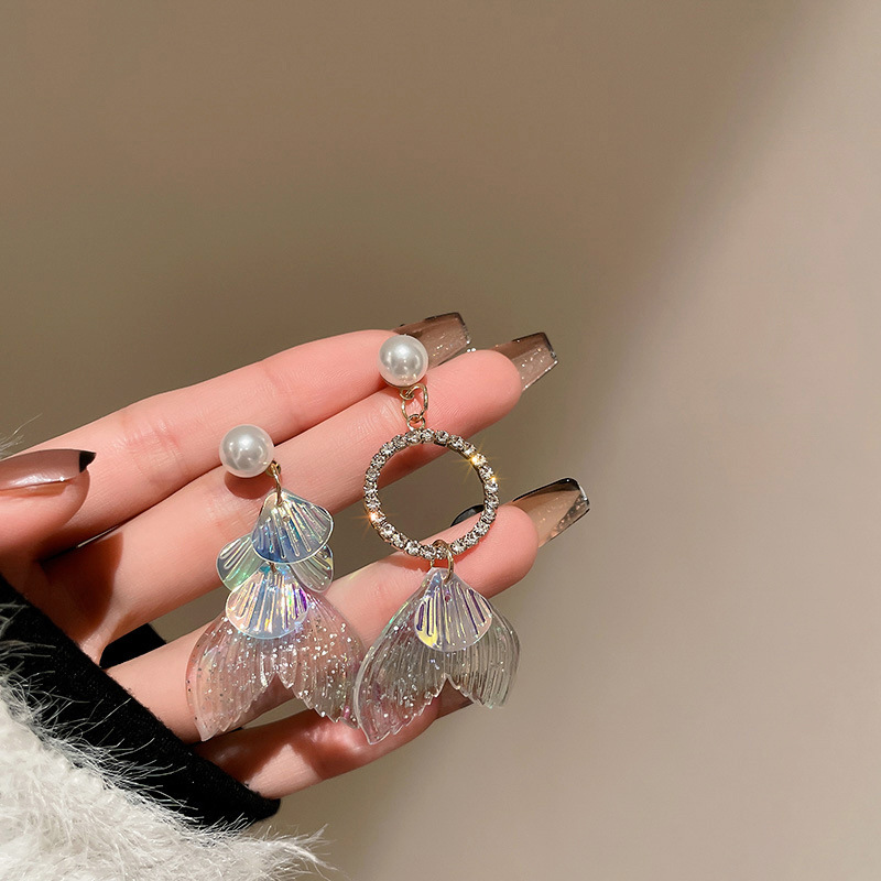 41# silver needle. asymmetric fishtail earrings