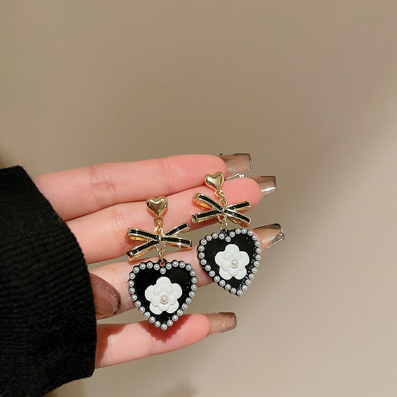 36# silver needle. pearl flower bow tie love heart earrings