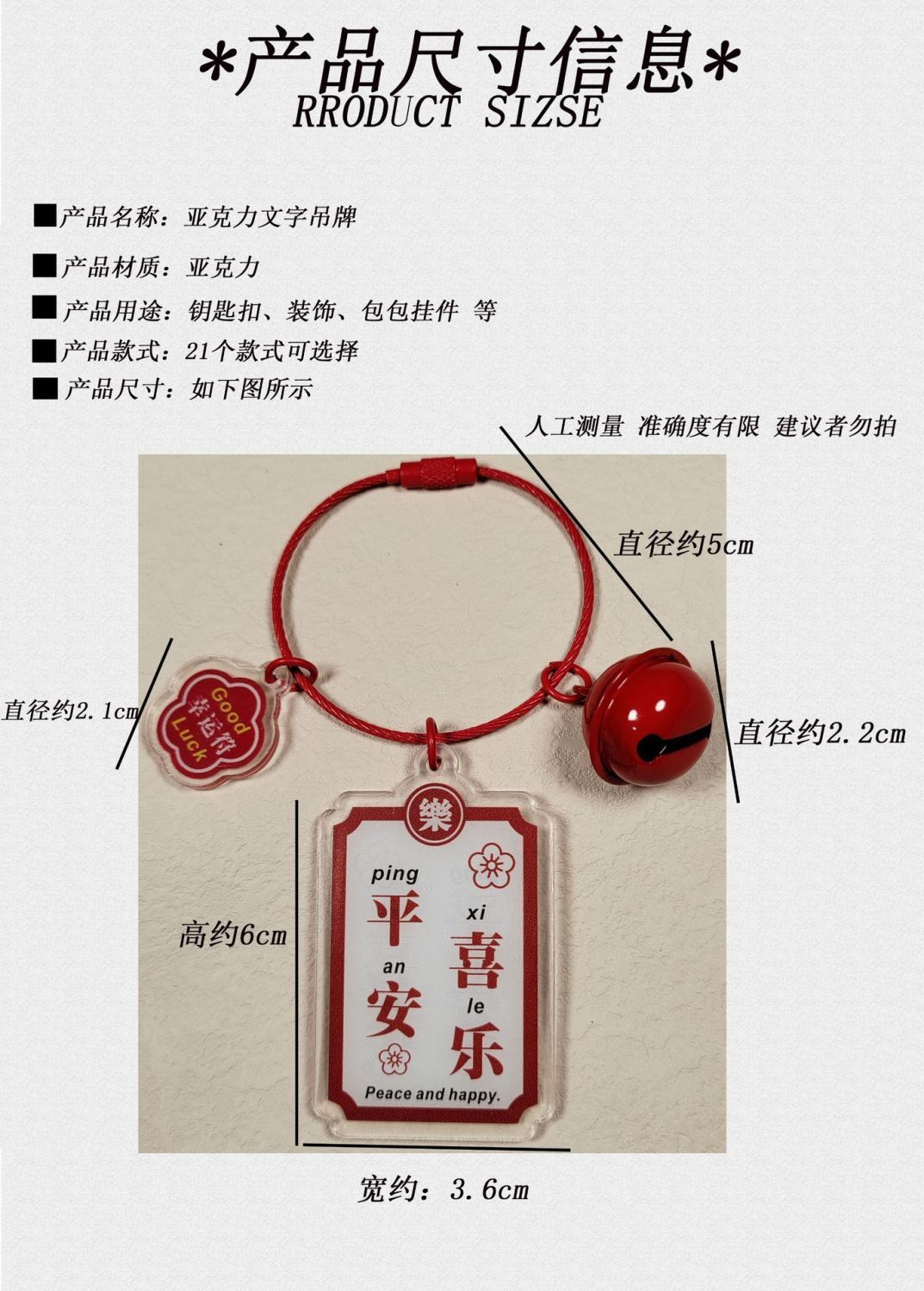 2022 New Arrival Peace Joy Beautiful Meaning Acrylic Word Plate Wire Rope Bag Ornaments Small Gifts for Students