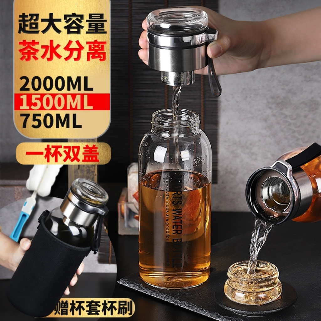 Glass Large Capacity Wholesale 2000ml Tea Water Separation Tea Cup Outdoor Large Cup Men's Tumbler Water Bottle
