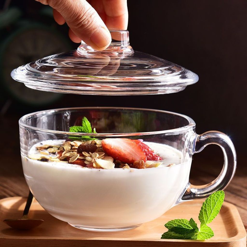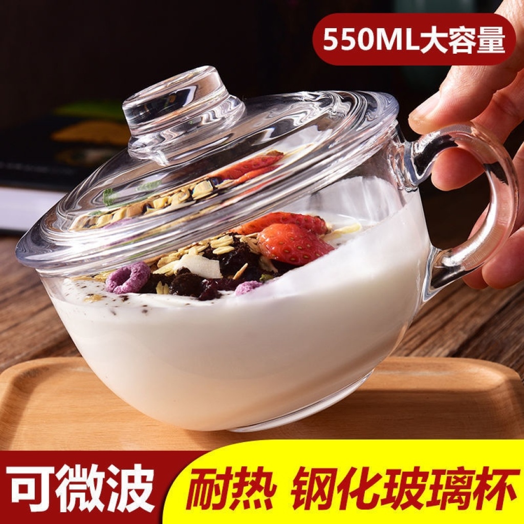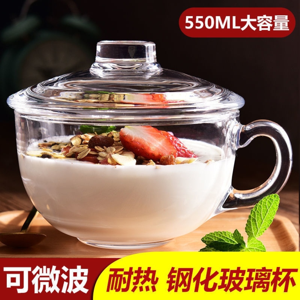 Glass Tempered Glass Oat Cup with Lid Teacup with Lid Breakfast Large Capacity Household Heat-Resistant Microwaveable