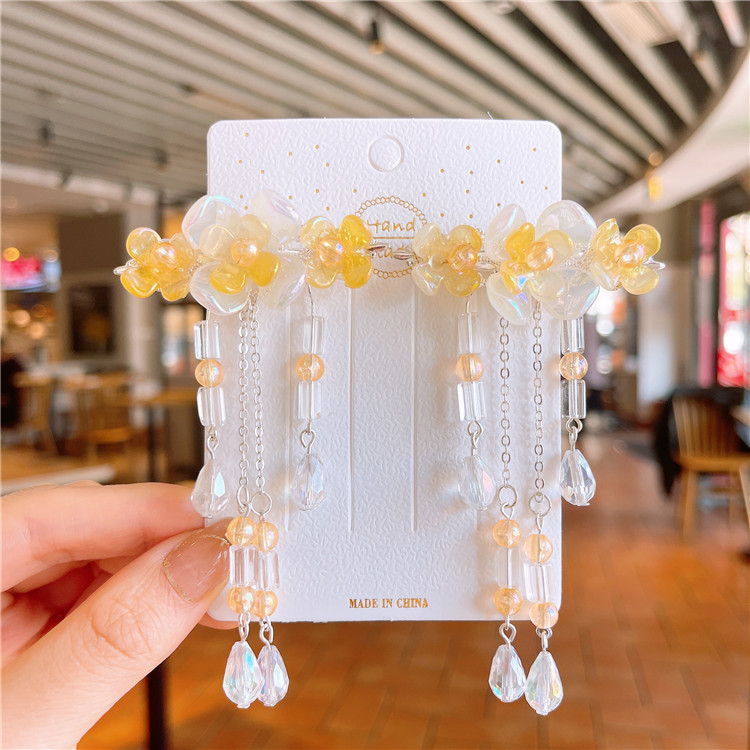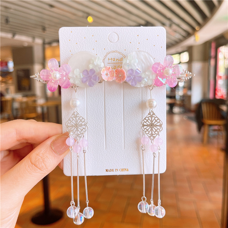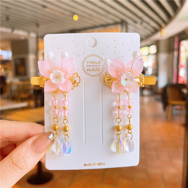 11号浅粉蝴蝶蓝色小花流苏对夹:古风对夹(2个装)