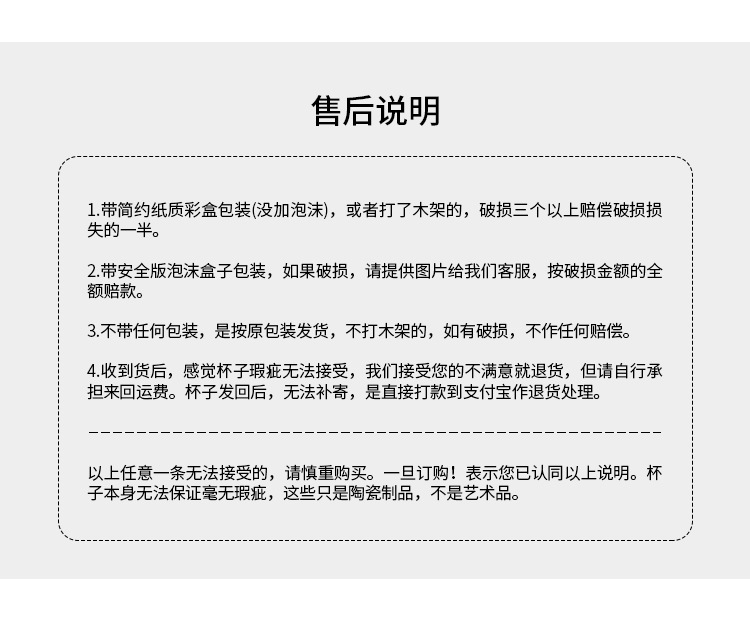 8. Before we ship the goods, we will carefully check the quality and appearance. Please open and count the goods in front of the postal and courier personnel when you receive the goods. If you find any shortage or damage, please refuse to sign to ensure the legitimate interests of both parties. (Signing, the courier company will not assume any responsibility).