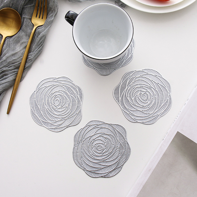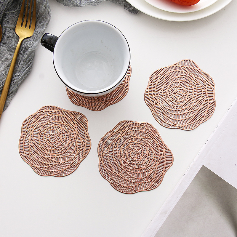 rose shape pvc coaster gilding small coaster rose gold hollow insulation decorative mat heat insulation non-slip placemat