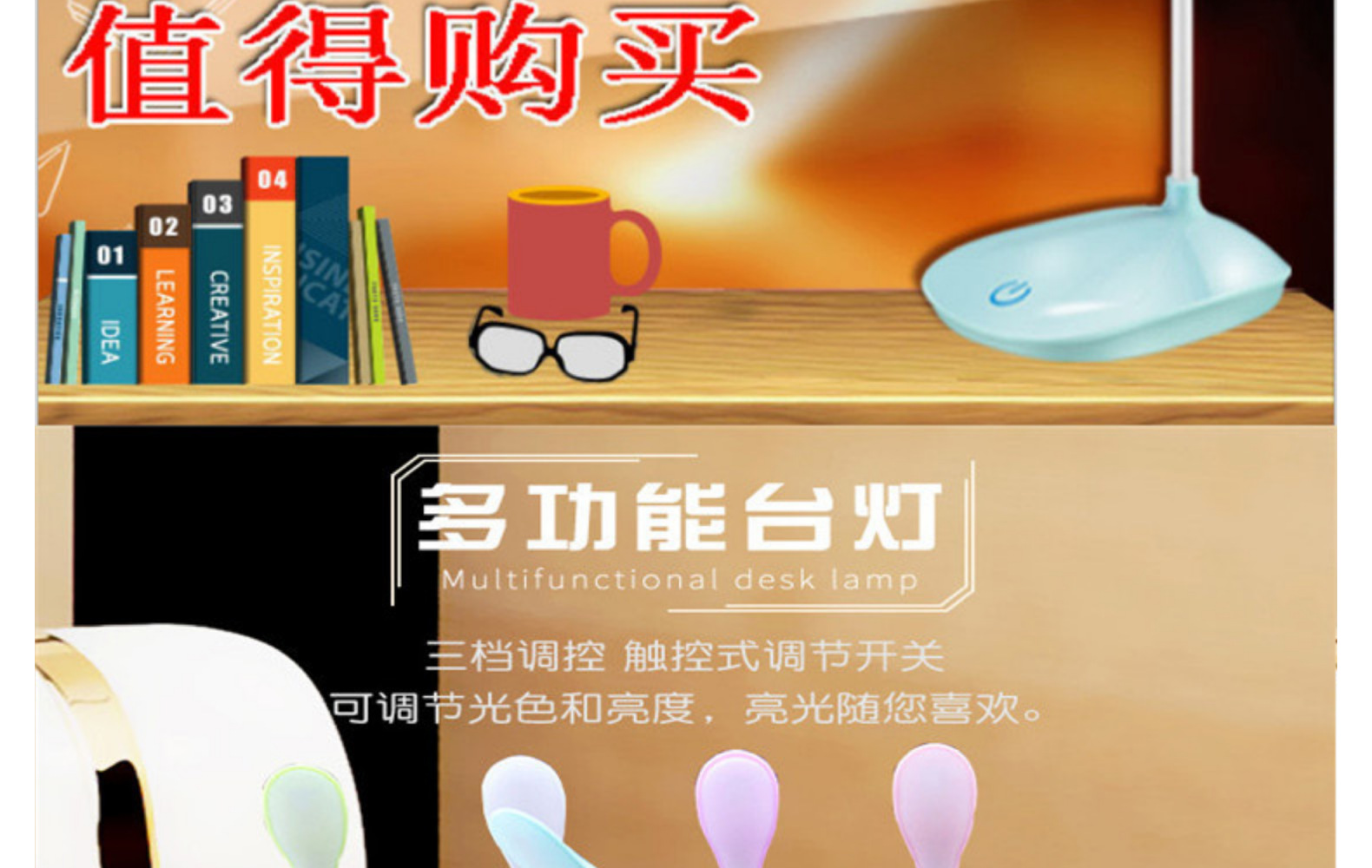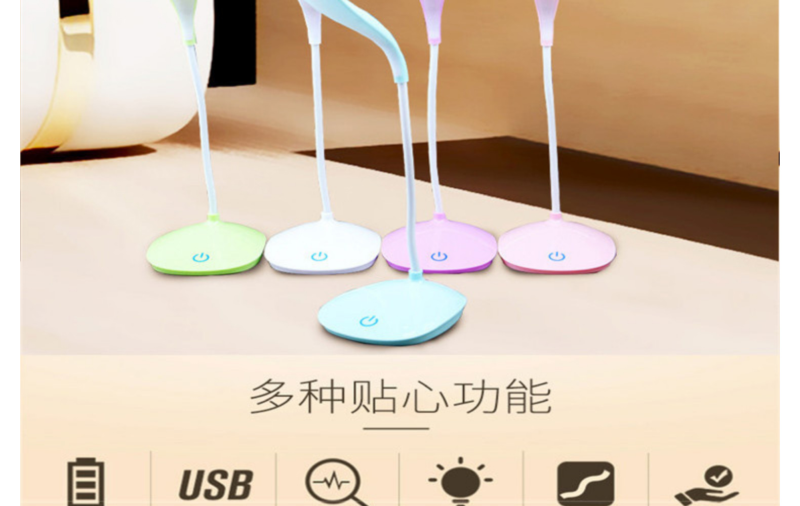 Children's Student USB Rechargeable Desk Lamp Three-Speed Touch Dimming Eye Protection Learning Desk Lamp Bedroom Bedside Led Small Table Lamp