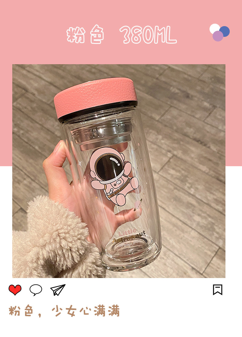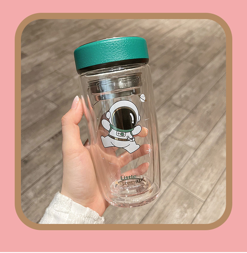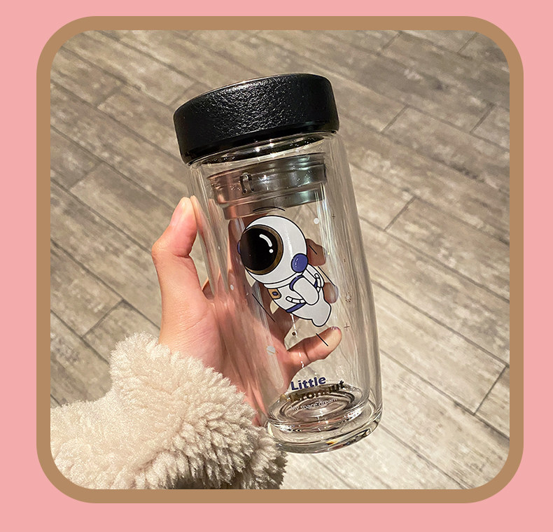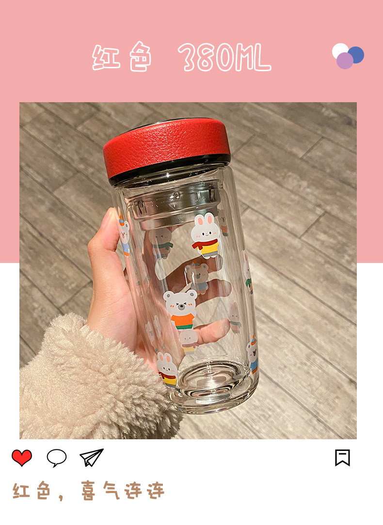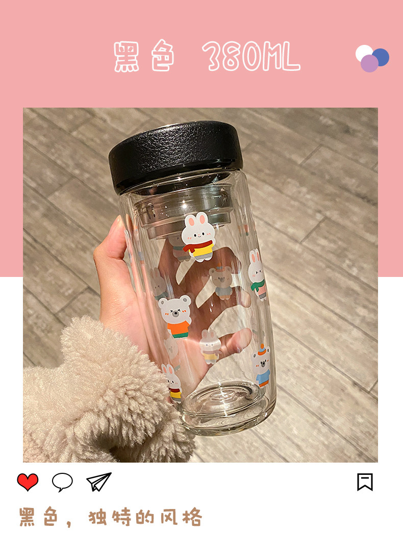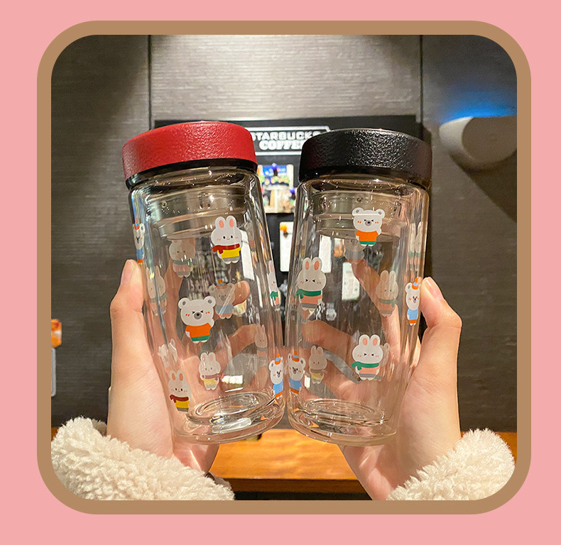 Double Layer Glass Cup Good-looking Couple Water Cup Female Cute Portable Office Tea Water Separation Tea Brewing Cup High Temperature Resistant
