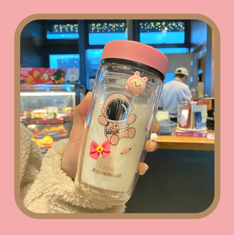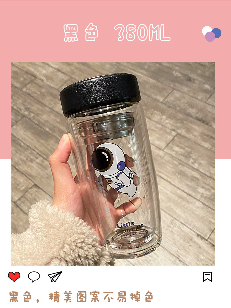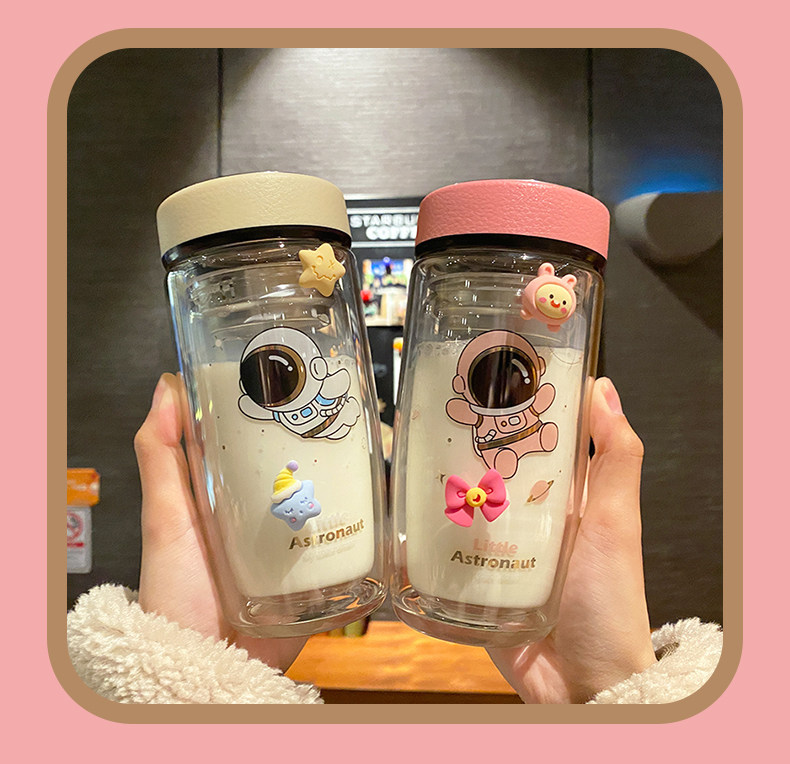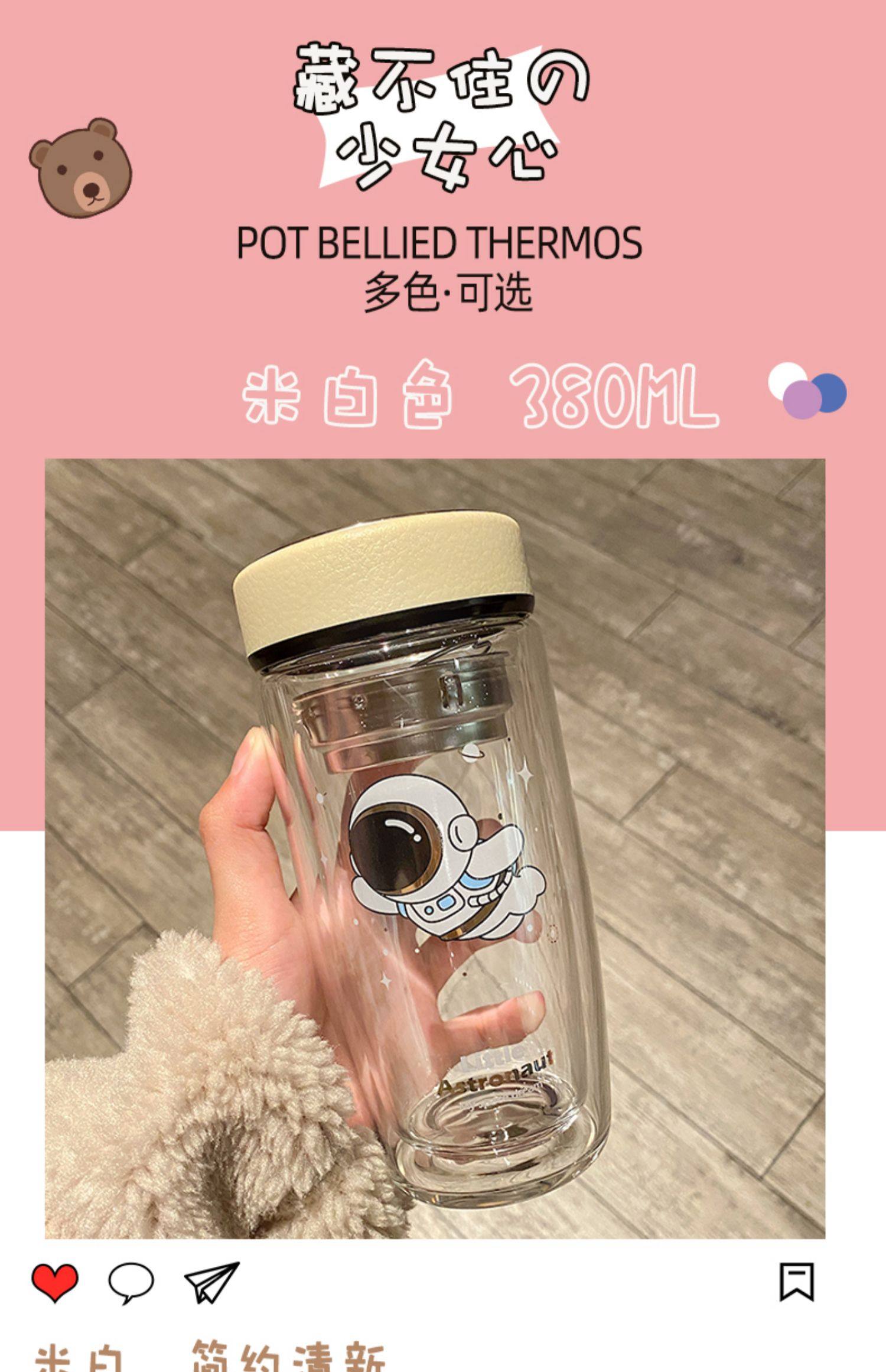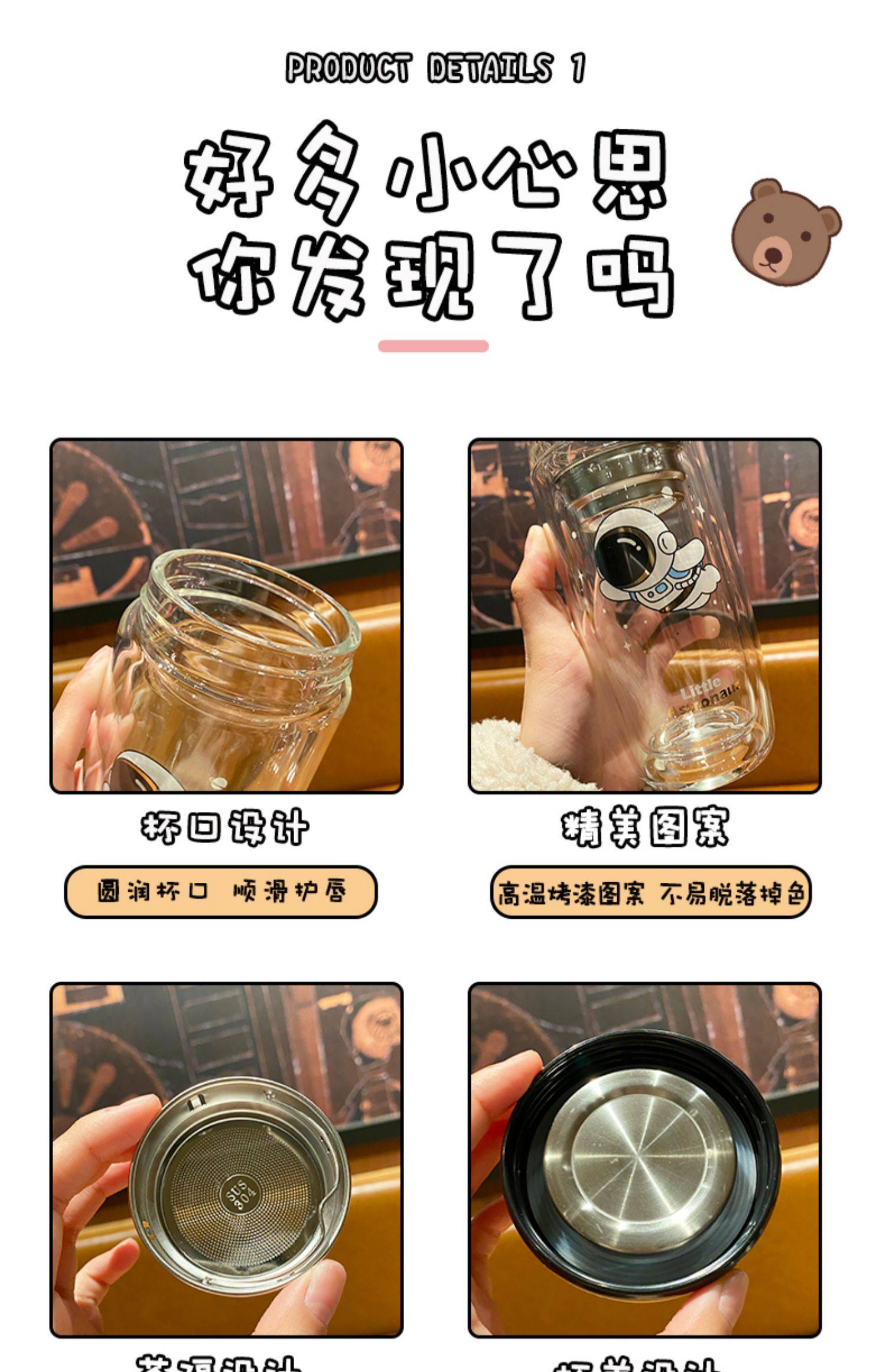Double Layer Glass Cup Good-looking Couple Water Cup Female Cute Portable Office Tea Water Separation Tea Brewing Cup High Temperature Resistant