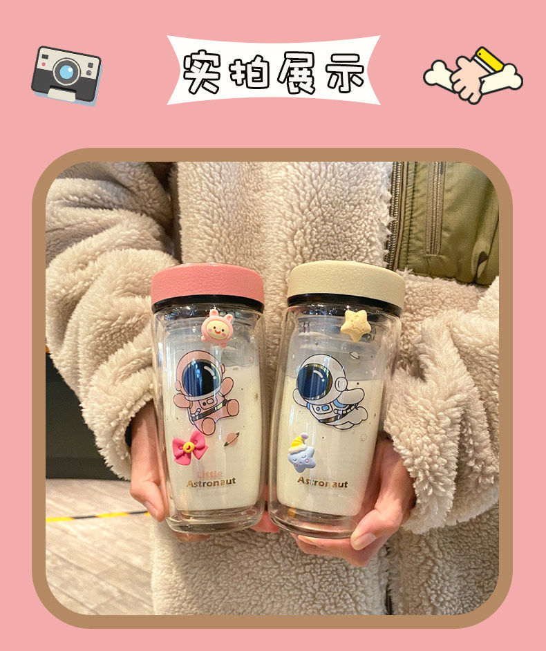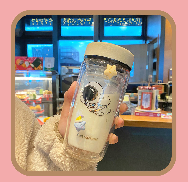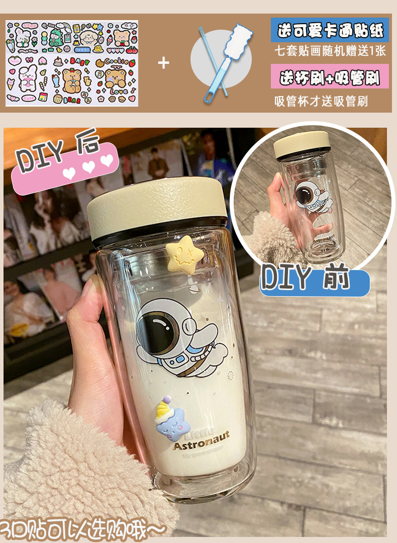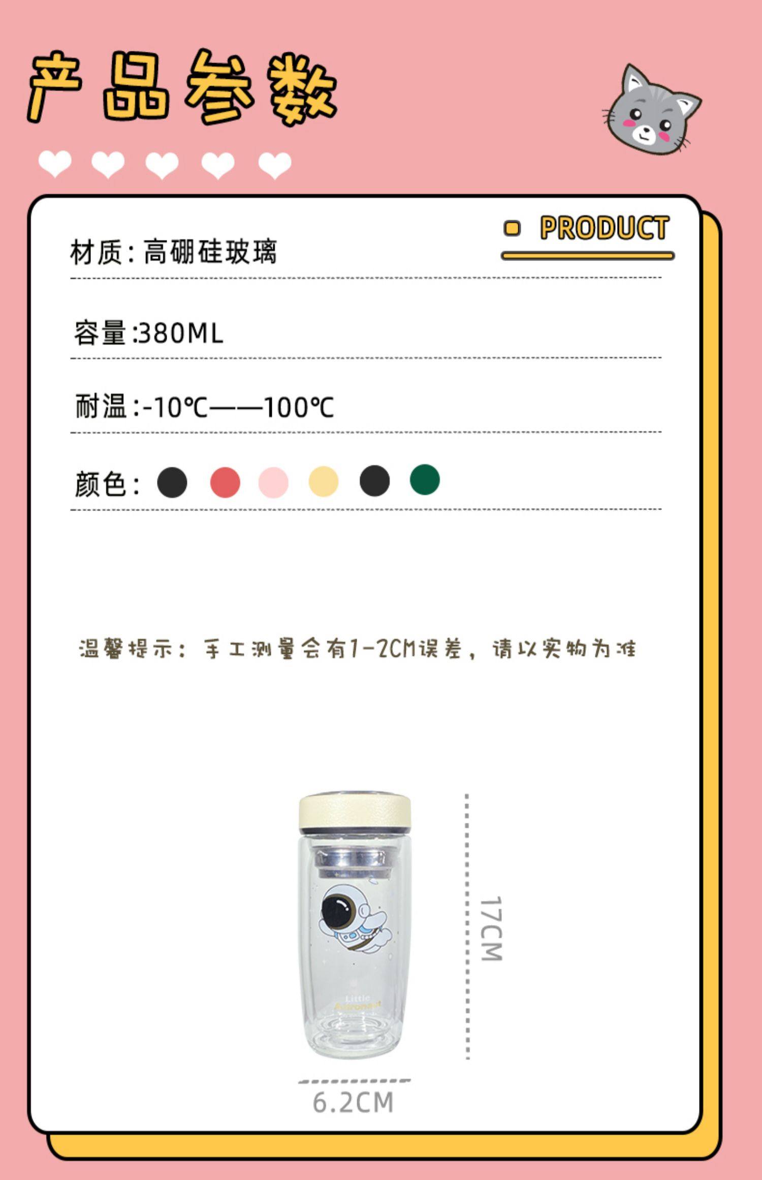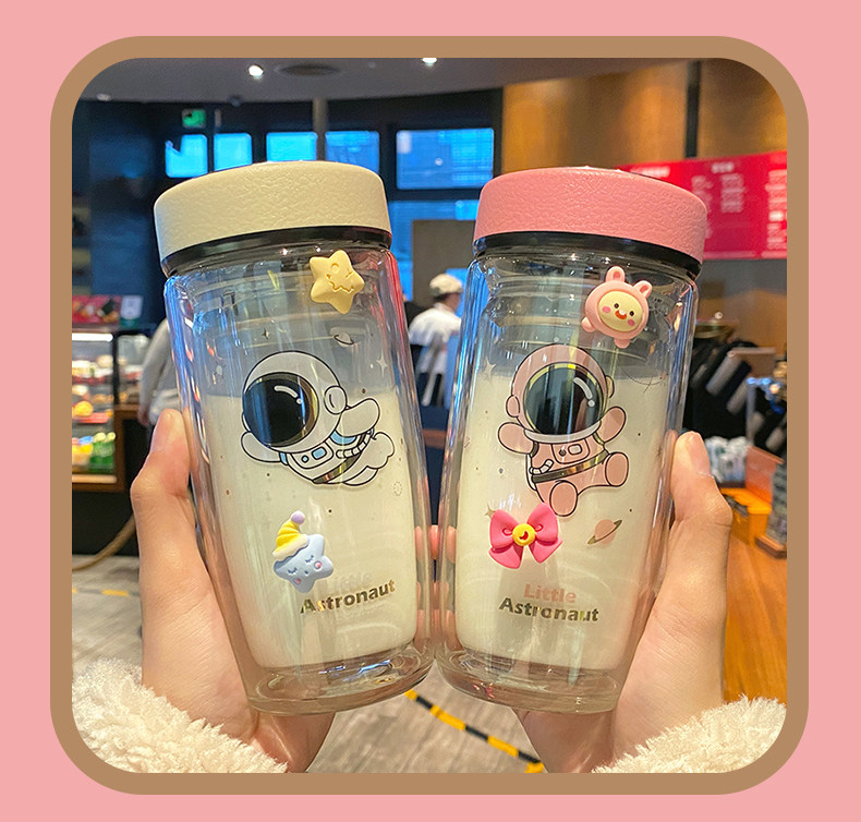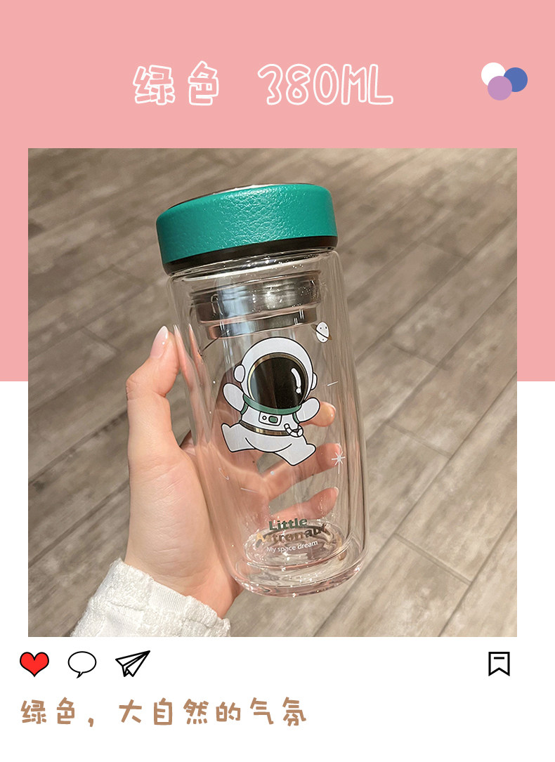 Double Layer Glass Cup Good-looking Couple Water Cup Female Cute Portable Office Tea Water Separation Tea Brewing Cup High Temperature Resistant