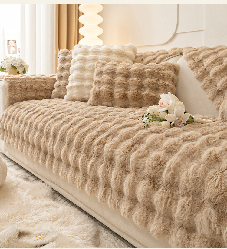 Rabbit Plush Internet Celebrity Sofa Cushion Winter Thickened Fleece Cushion Non-Slip Leather Sofa Cover 2022 New Cover Towel