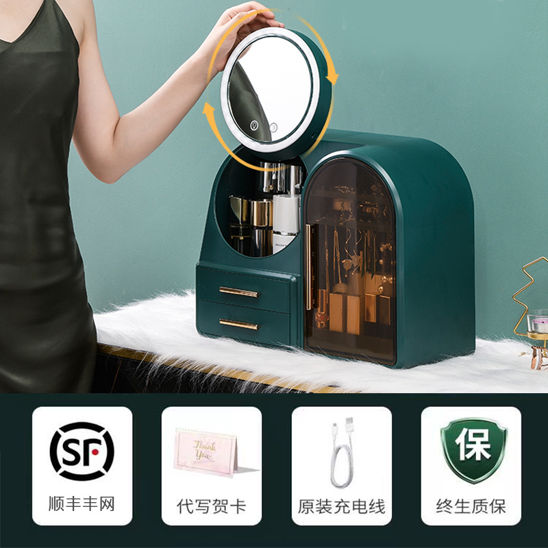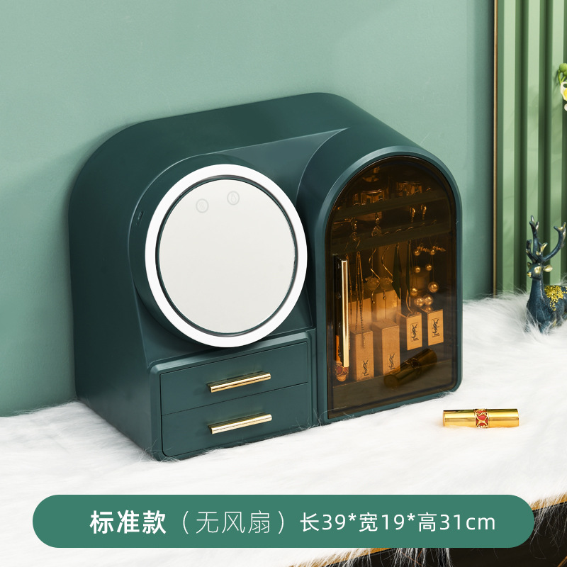 flagship [dark green] + three-color electrodeless dimming led make-up mirror + soft fan