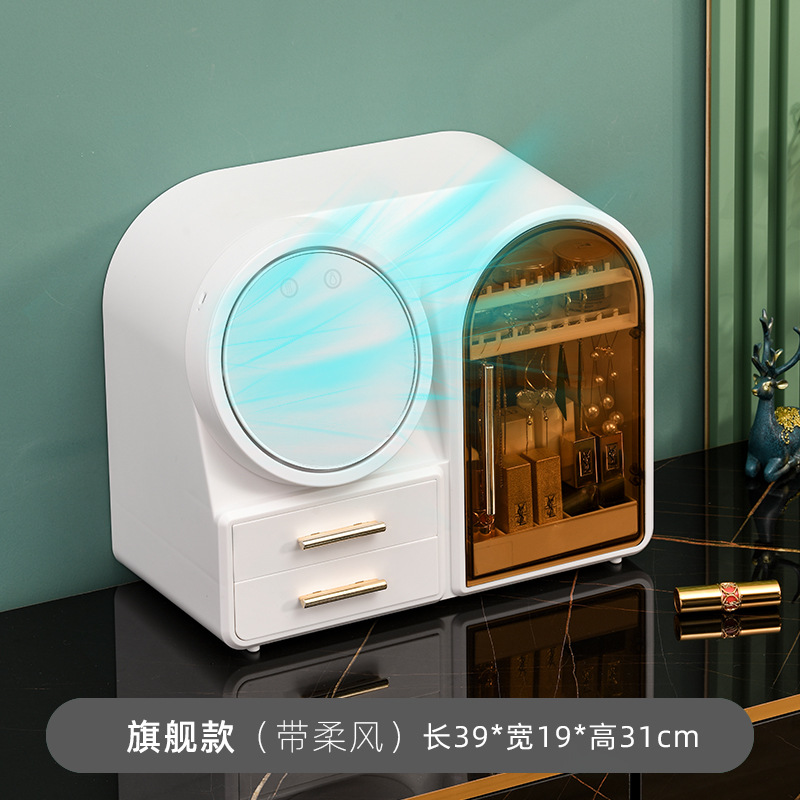 flagship [creamy-white] + three-color electrodeless dimming led make-up mirror + soft fan