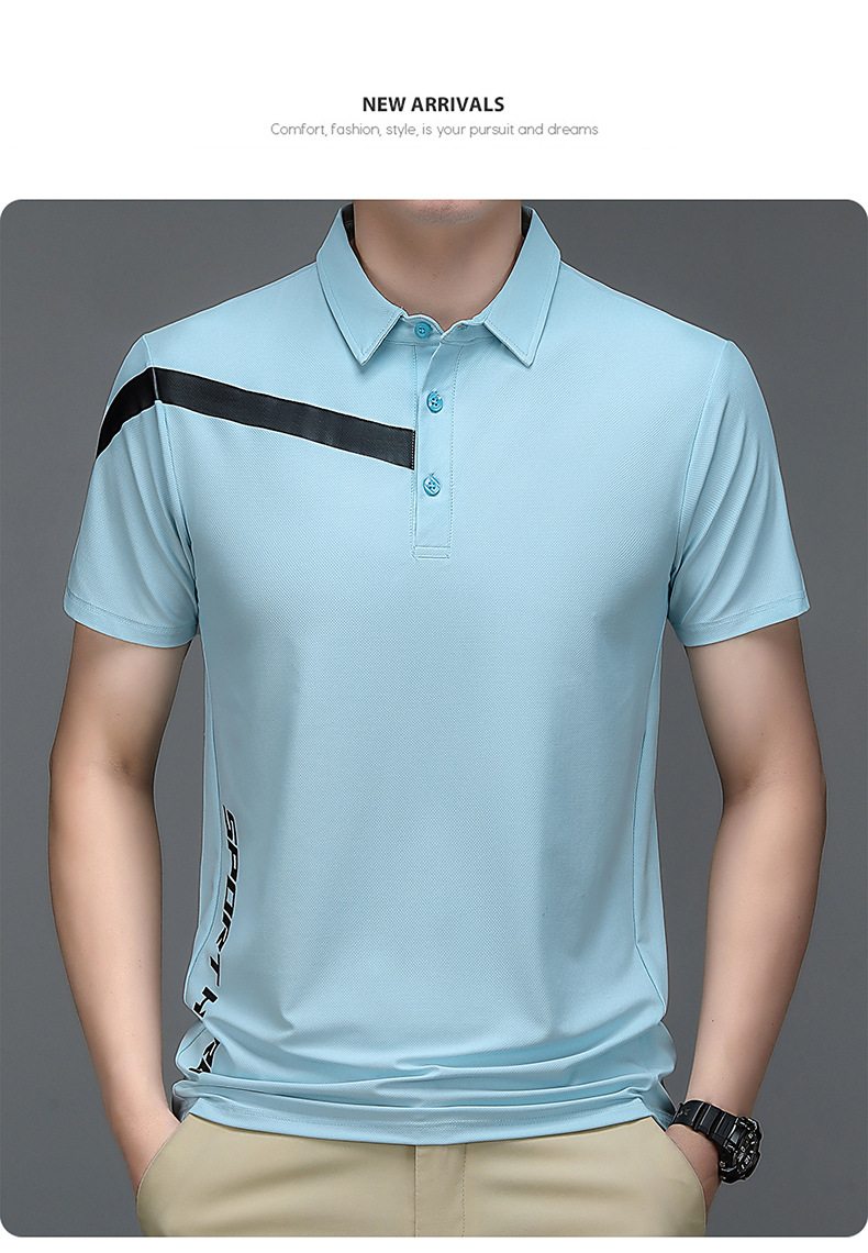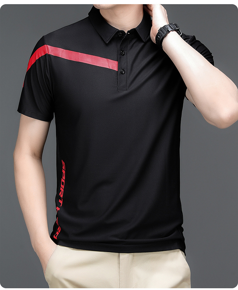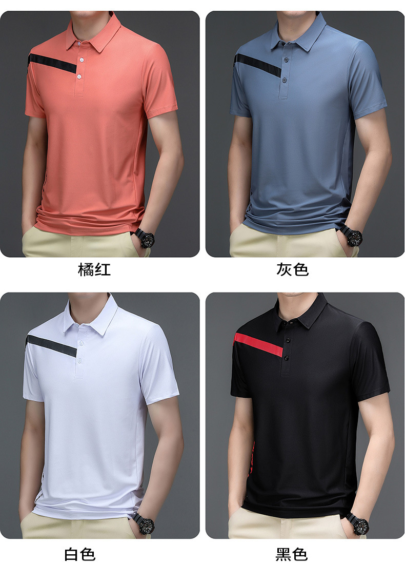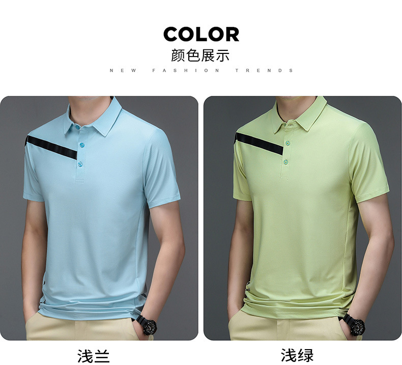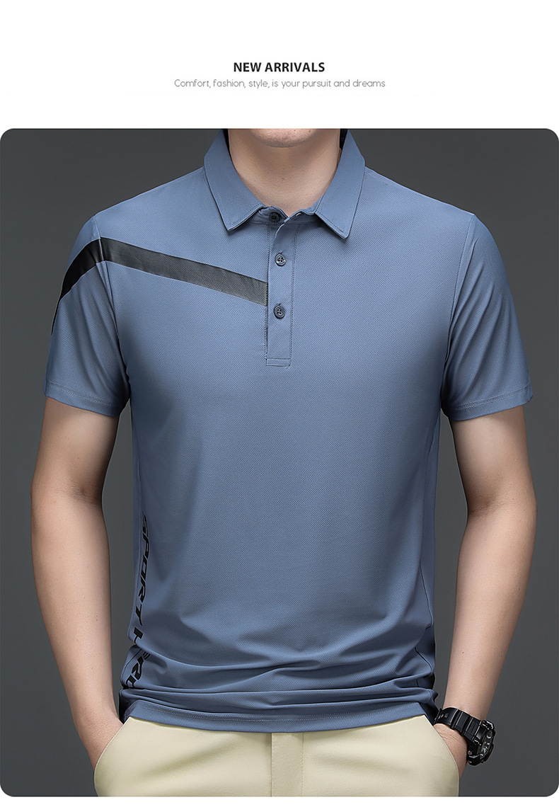 2023 Summer Men's Ice Silk Short Sleeve T-shirt Sports Lapel Polo Shirt Casual Fashion Menswear T-shirt Top