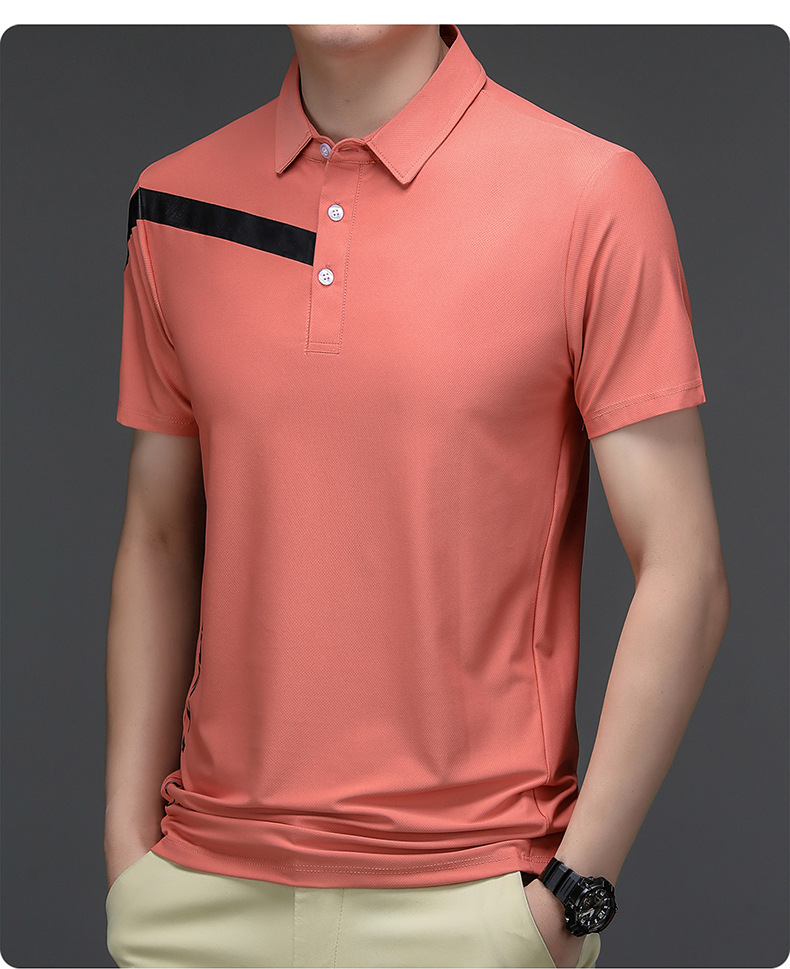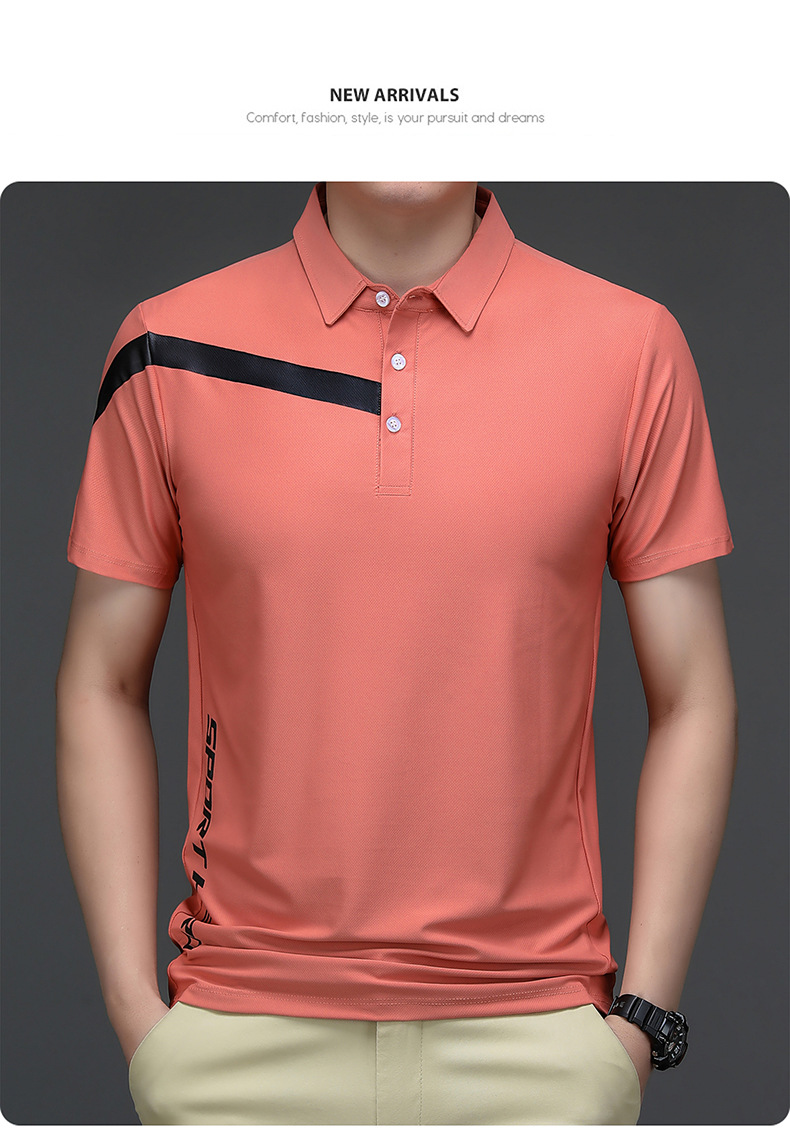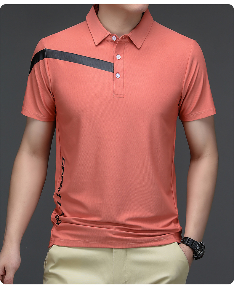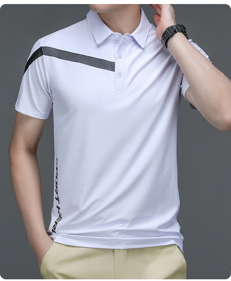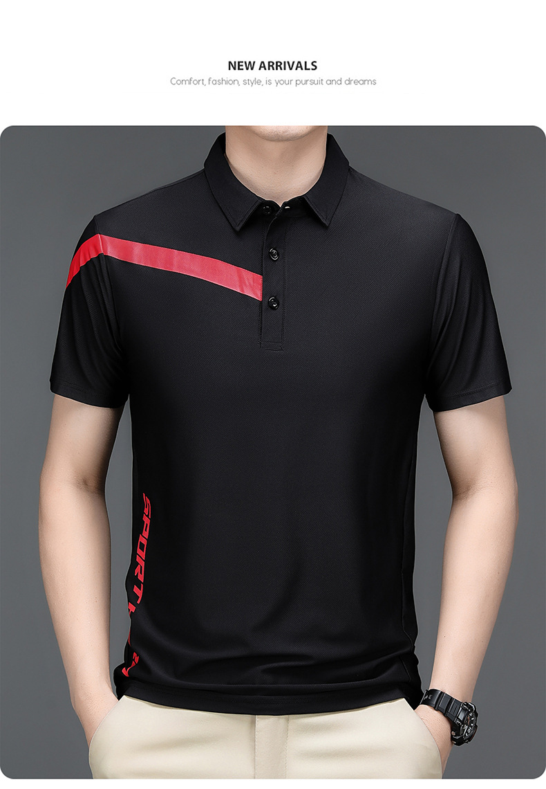 2023 Summer Men's Ice Silk Short Sleeve T-shirt Sports Lapel Polo Shirt Casual Fashion Menswear T-shirt Top