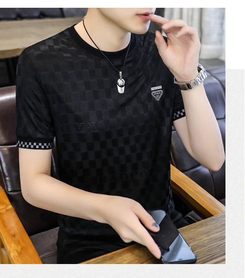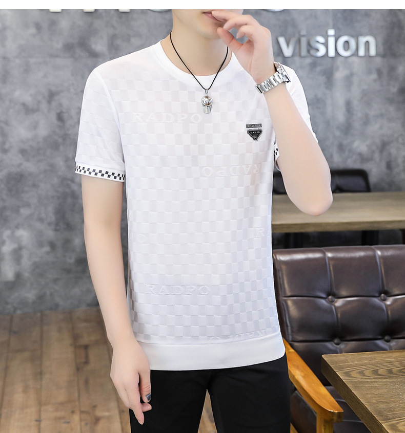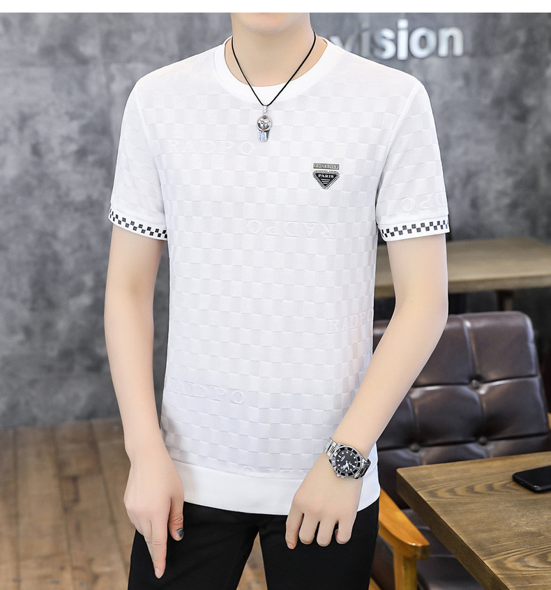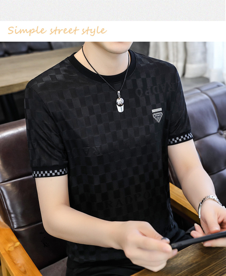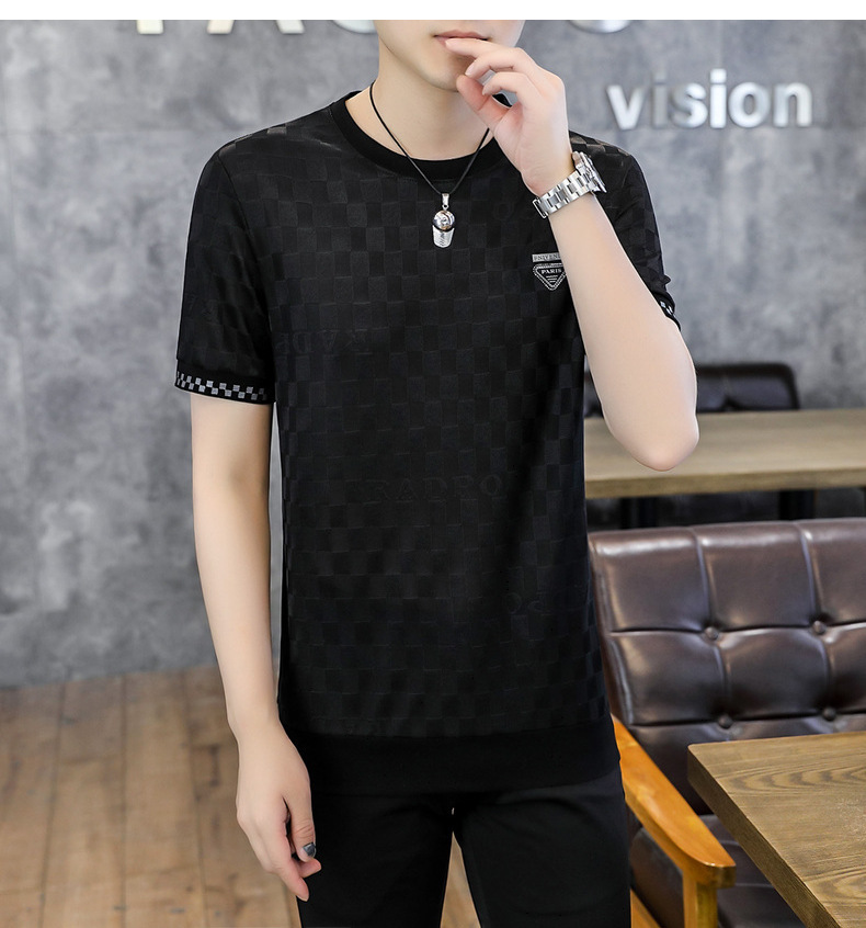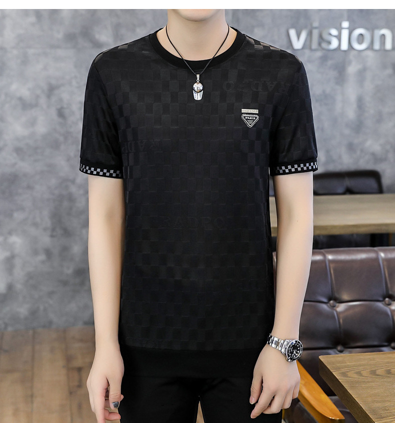[Popular] Ice Summer New Ice Silk round Neck Short Sleeve T-shirt Men's European Goods Casual Thin Breathable Top