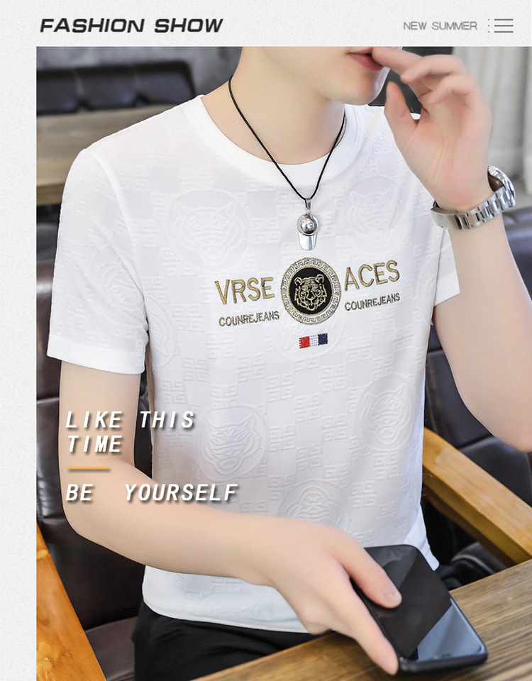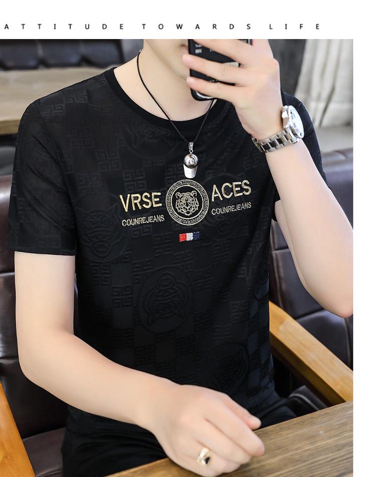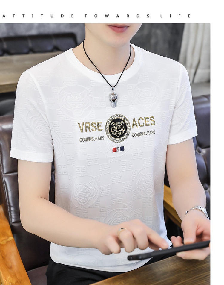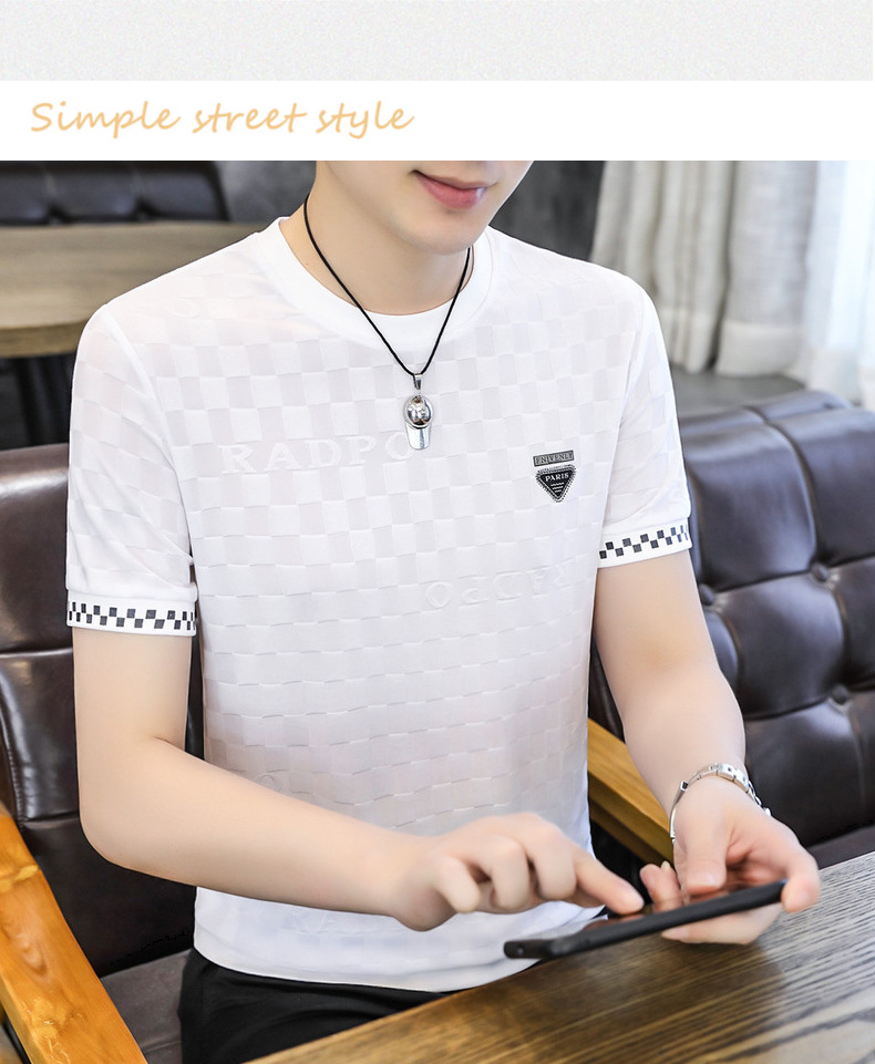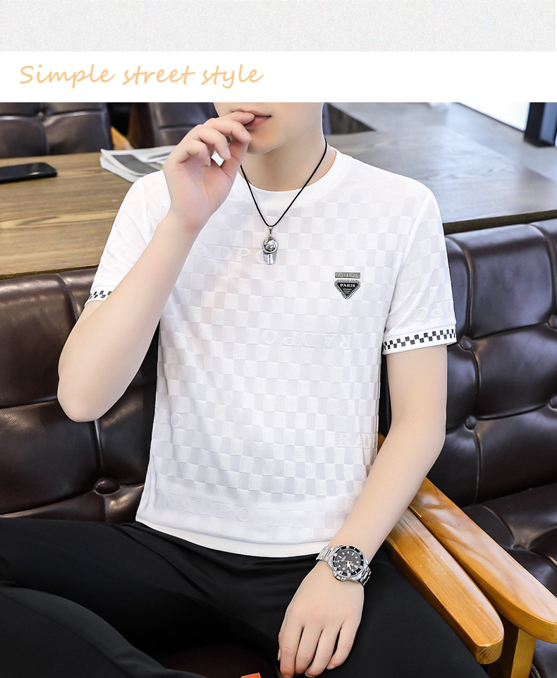 [Popular] Ice Summer New Ice Silk round Neck Short Sleeve T-shirt Men's European Goods Casual Thin Breathable Top