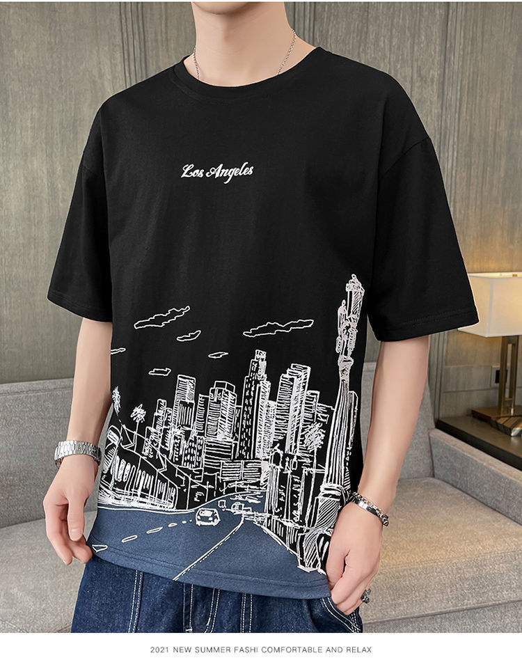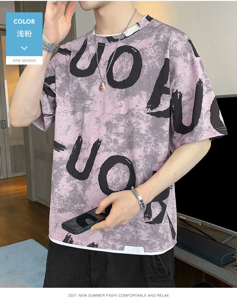 Short-Sleeved T-shirt Men's Korean-Style Trendy Summer New Loose Ice Silk Half Sleeve Youth Casual All-Matching Men's Clothing Top