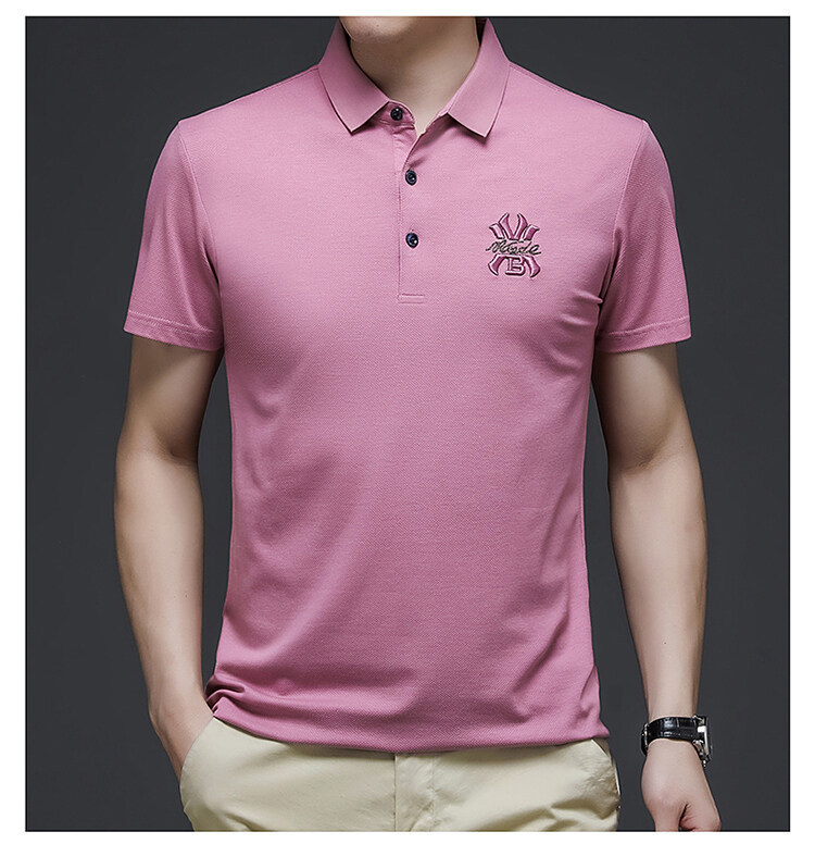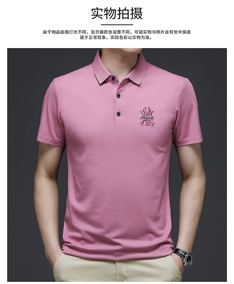 Men's Polo Shirt High-End Summer Short Sleeved T-shirt T-shirt Summer Lapels Business Casual Solid Color Fashion Breathable Ice Silk Short Sleeved T-shirt