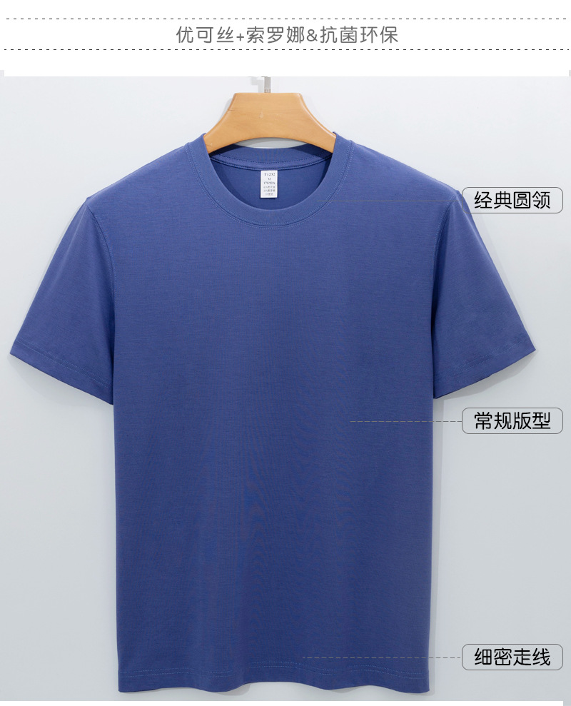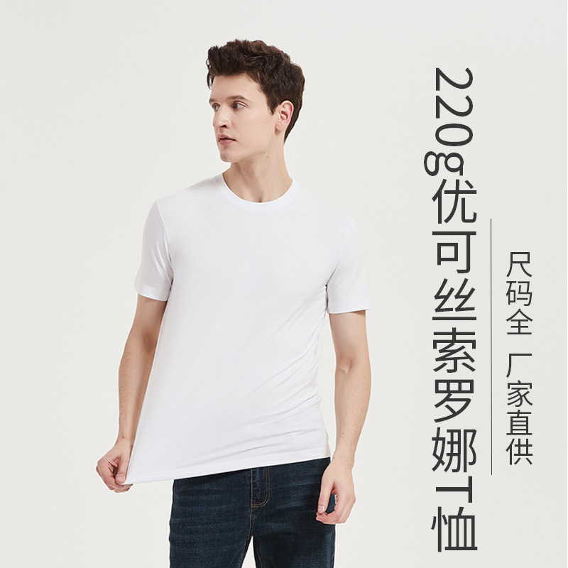 High-End Youke Silk Sorona T-shirt Male Half Sleeve 220G Cool Feeling Modal T-shirt Women's round Neck Short Sleeve Men's T-shirt