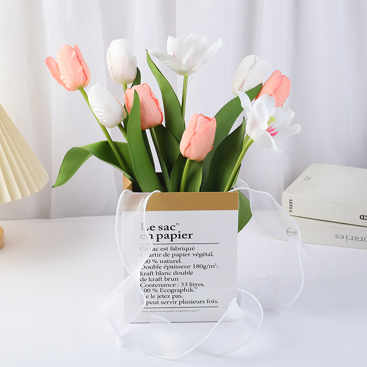 9 tulip (send ins paper bag + ribbon): pure white