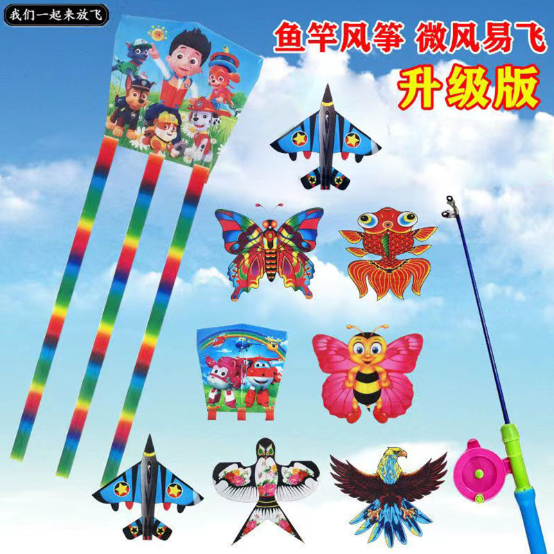 square kite + color double-section telescopic fishing rod +50 m line [pattern mixed hair]]