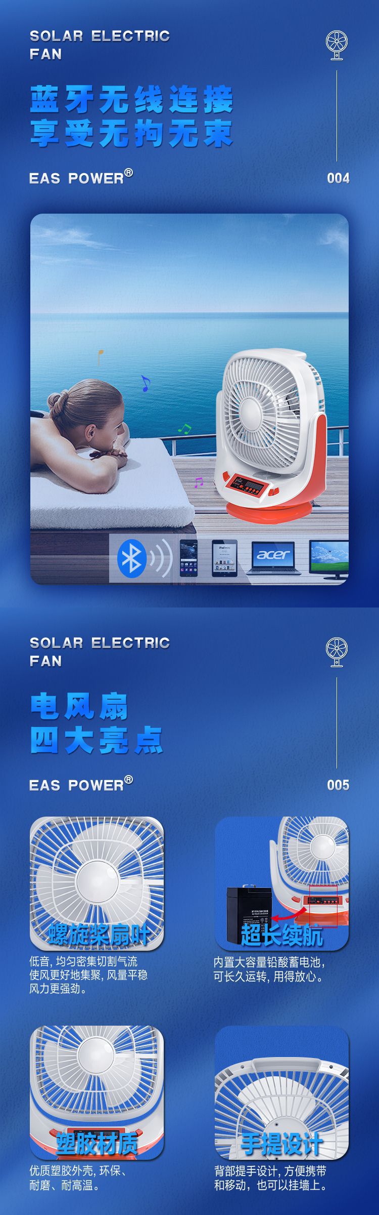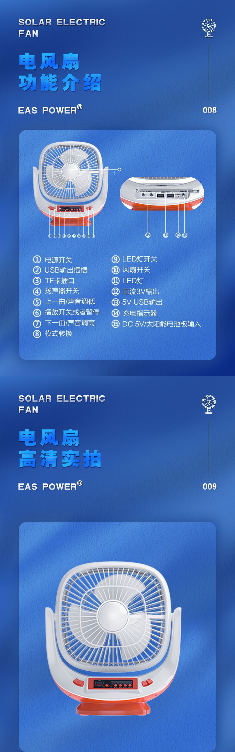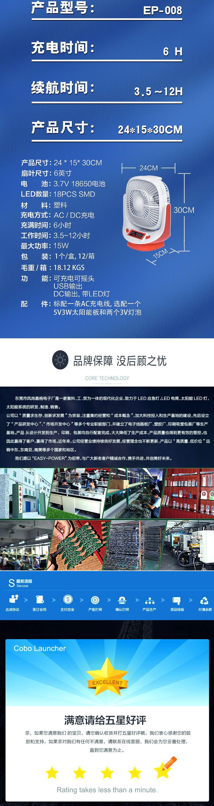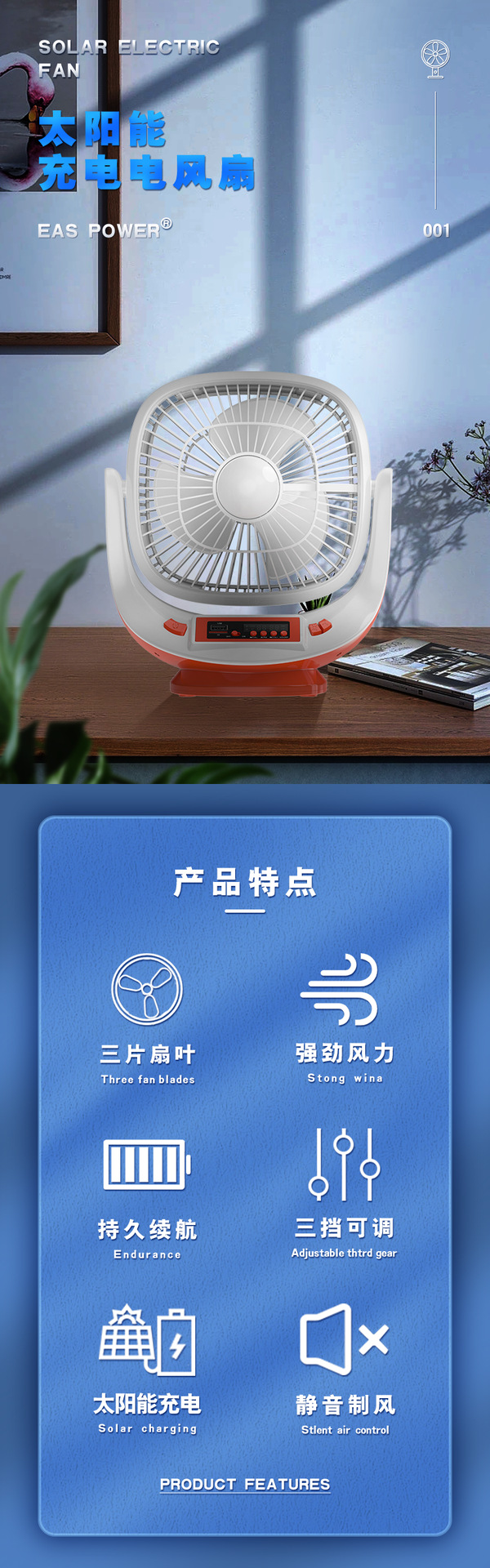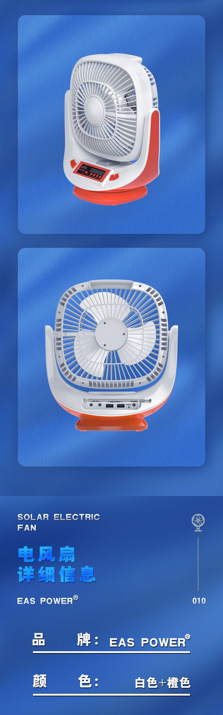 About Product:EASY POWER model EP-008 speed control gear three-gear timing function more than 8 hours noise below 40db function multi-gear adjustment certification type ROHS fan type desk fan switch type common button air supply mode turn to page POWER type whether solar energy is Rotary fan color White