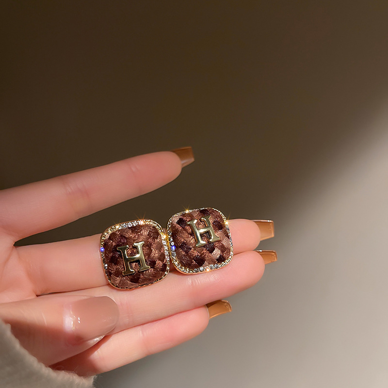 38# silver needle-brown diamond leopard print
