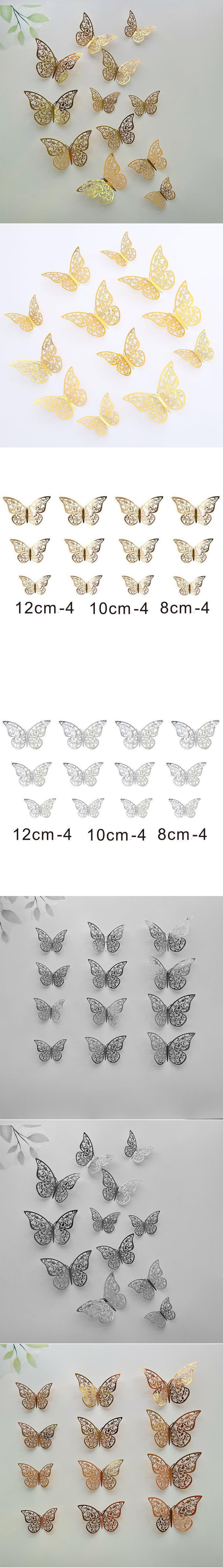 c hollow butterfly 3d three-dimensional simulation butterfly bedroom living room festival decorations paper butterfly 12 pieces three colors