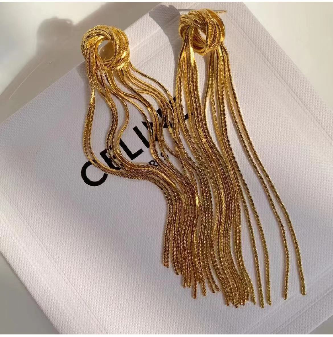 Original Design European, American and French Style All-Matching Graceful Snake Gold Ear Clip Metal Chain Long Tassel Earrings Earrings