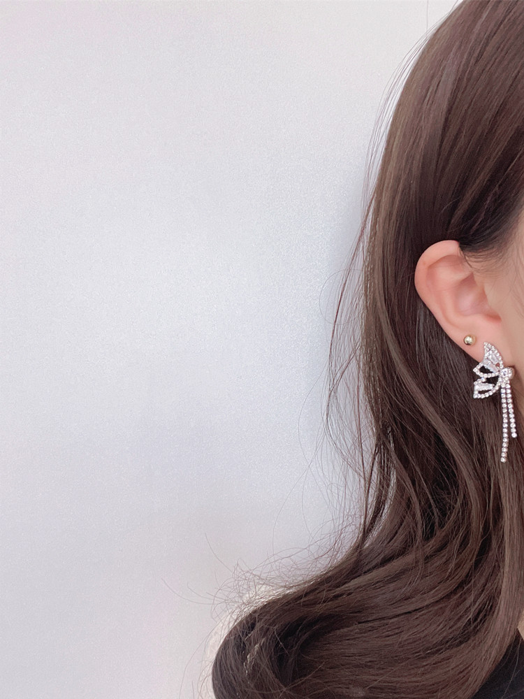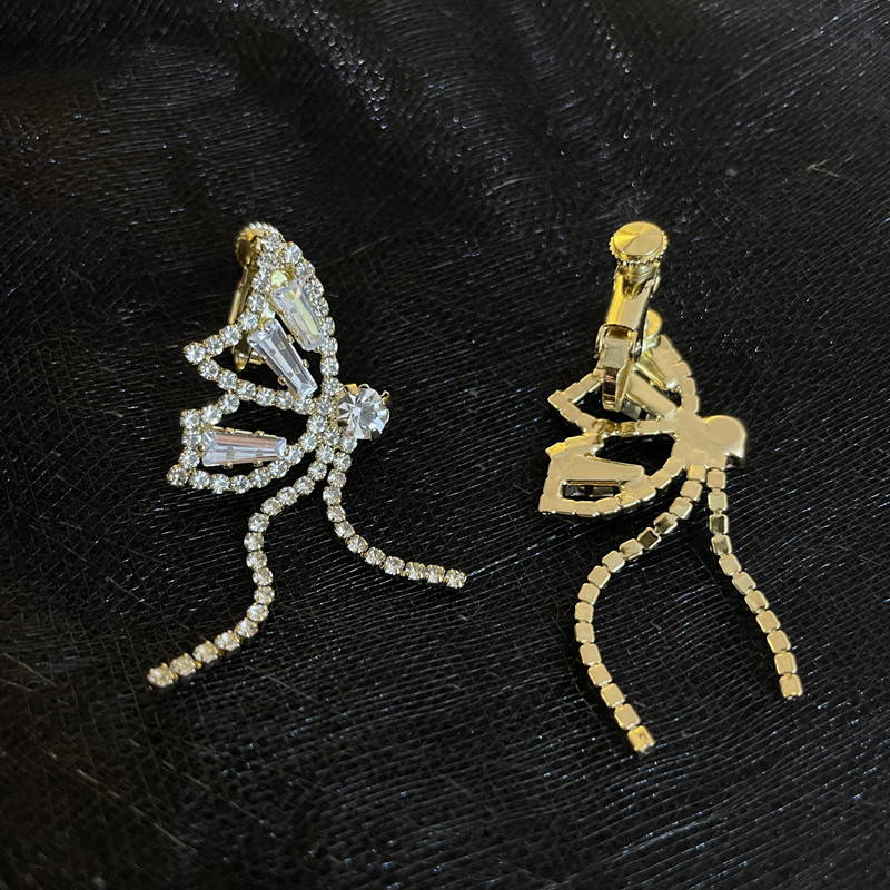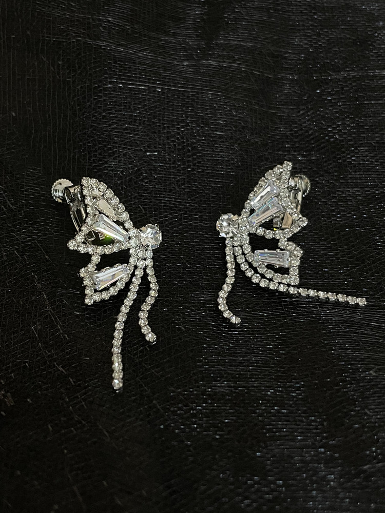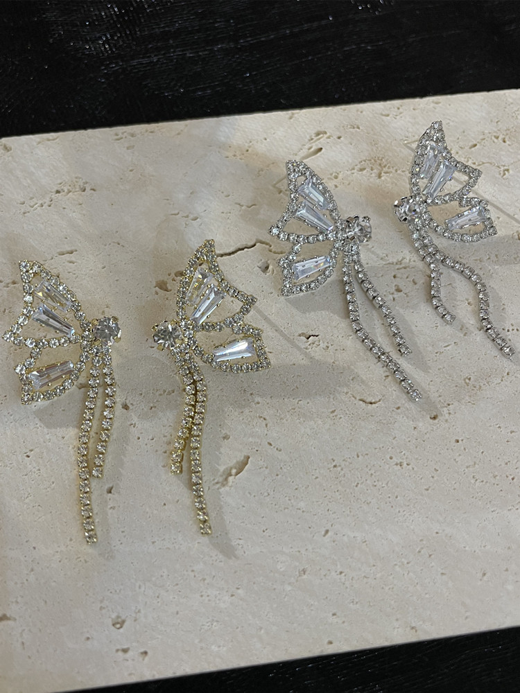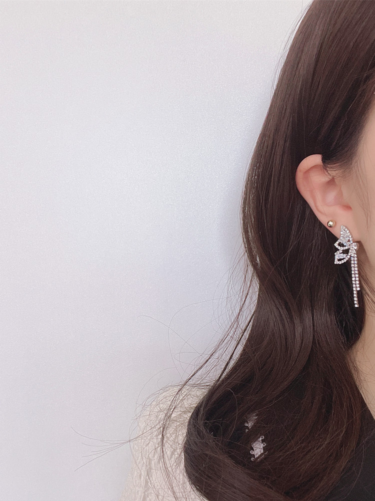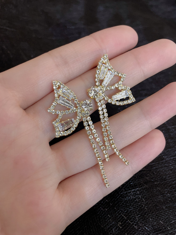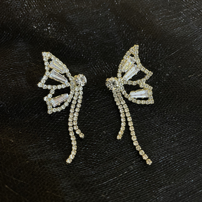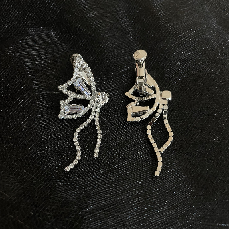 INS Style Super Fairy Rhinestone Butterfly Elegant Tassel Earrings Long Sterling Silver Needle Non-Piercing Ear Clip Female Earrings