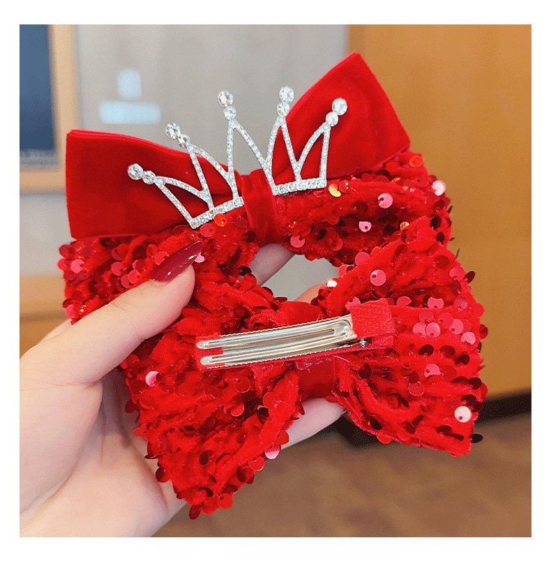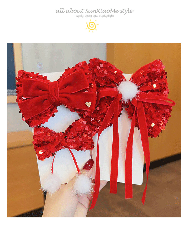 Bow Barrettes Children's Tassel Hairpin Baby Back Clip Girl Red Hair Accessory Girl's New Year Headdress