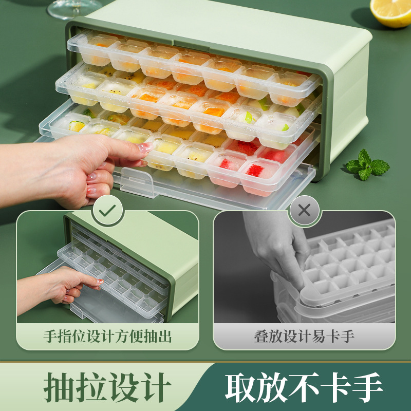 [green】 3 layers pull ice tray get ice scoop free